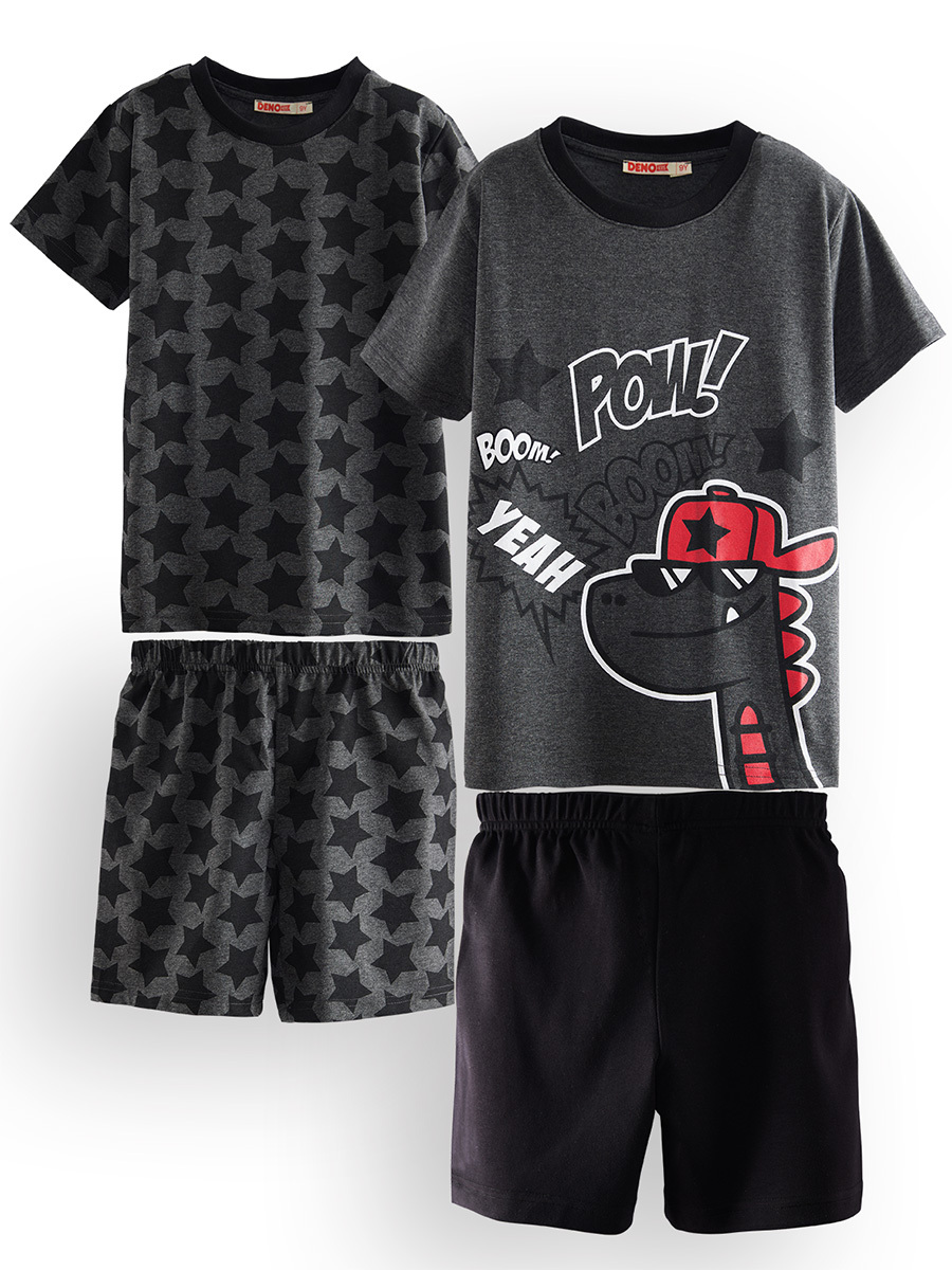 2-pack pyjama set. Short sleeve, crew neck. Stars and dinosaur prints. The bottom of the set is designed as comfortable shorts. All Denokids products are produced in accordance with European standards and "Child Safety Rules". Passed throug