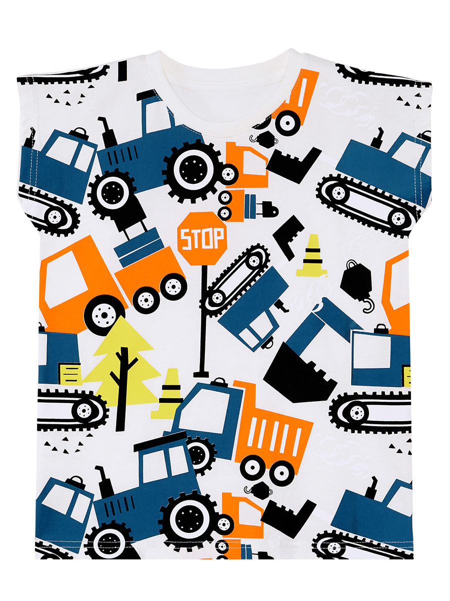 2 parça erkek takım. Pamuklu penye kumaştan, kolsuz, beyaz t-shirt. Üzeri araçlar baskılı. Düşük ağ kesimli, pamuklu kumaştan kapri boy pantolon. Bir paçasında itfaiye baskısı vardır. İki yanı ceplidir. Beli lastik ve kordonludur. Tüm Denokids ürünleri çocuk güvenlik kurallarına uygun olarak üretilmekte ve iğne dedektörlerinden geçmektedir. Üst: %100 Pamuk - Alt: %95 Pamuk %5 Elastan