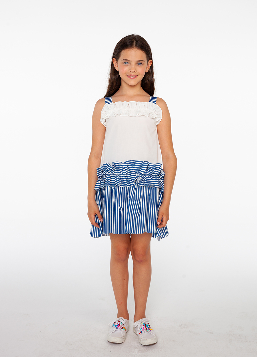 Askılı Marin Pamuklu Kız Çocuk Elbise