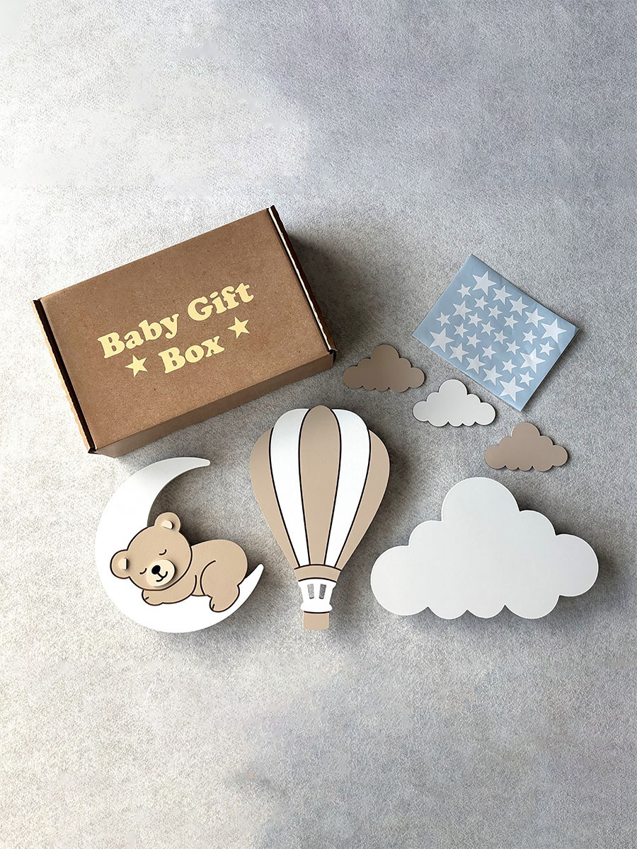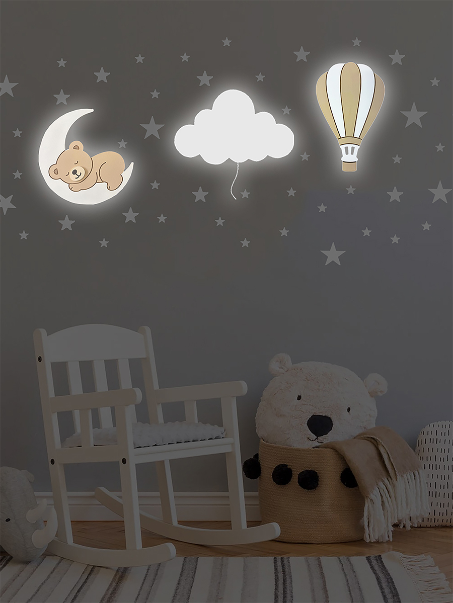 EL BOYAMASI LAMBA SETİ Bebek ve çocuk odaları için sevgiyle tasarlanan bu özel lamba seti, 4 kat el boyaması ile özenle hazırlanır ve bebeğinizin ismine özel olarak kişiselleştirilir. Gün ışığı tonundaki aydınlatması sayesinde güvenli, sıcak ve huzurlu bir uyku ortamı sunar. Paket İçeriği • 1 adet Ay Üzeri Ayıcık Lamba • 1 adet Kapadokya Balon Lamba • 1 adet Beyaz Bulut Lamba • 56 adet Yıldız Sticker (3-4-5 cm karışık) Ürün Özellikleri • Materyal: Avrupa standartlarına uygun 1. sınıf ahşap • Boya: Sağlığa zararsız, su bazlı akrilik boya ile 4 kat el boyaması • LED: Gün ışığı renkli, CE sertifikalı, ısınma yapmayan LED sistem • Pil: 9V tek pil ile çalışır • Kullanım Şekli: Alt kısmında bulunan ip ile açma-kapama yapılır • Boyut: 36 cm, 8 mm kalınlık • Montaj: Arka kısmında asma aparatı bulunmaktadır Ahşap