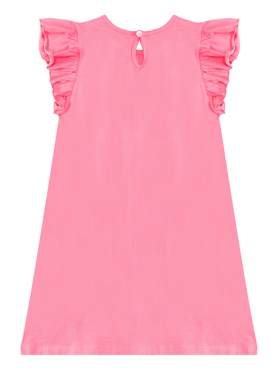 Pamuklu penye kumaştan kız çocuk elbise. Üzeri sevimli ayıcıklar baskılıdır. Kolları fırfırlıdır. Tüm Denokids ürünleri Çocuk Güvenlik Kuralları'na uygun olarak üretilmektedir. Çocuğunuzun tenine bir zarar gelmemesi için tüm ürünler, iğne kırıklarını tespit edebilen metal dedektörlerinden geçirilmektedir. %100 Pamuk