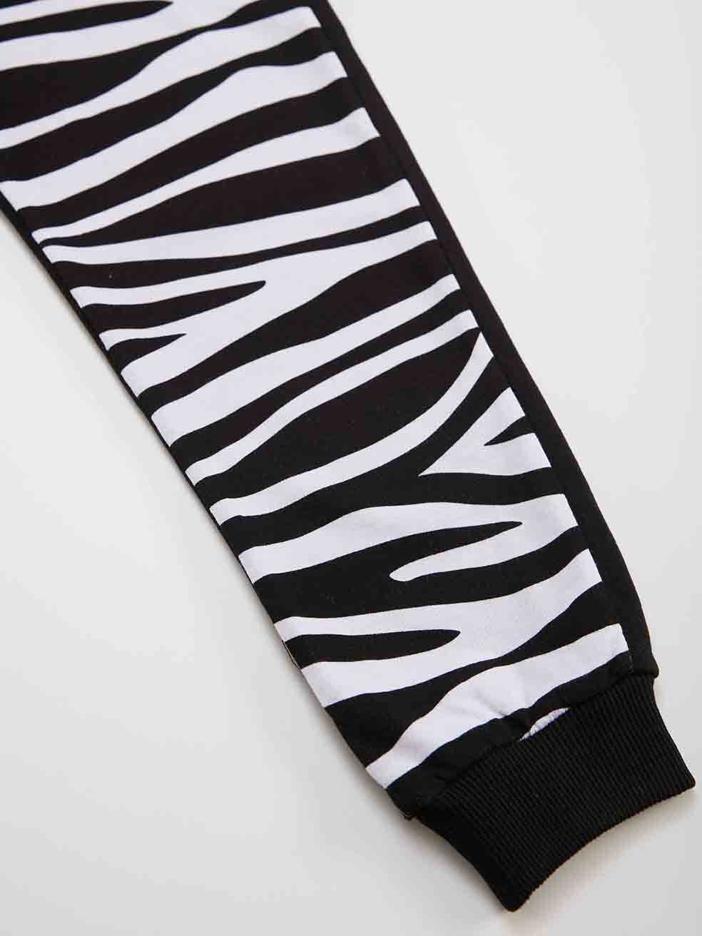 2 piece set. Tee made of cotton jersey. Has a zebra print on. The set is completed with Harem style, baggy pants. Front fabric of the pants is made of zebra pattern cotton and the back is made of re-cycled fabric. Has two pockets. Has elast