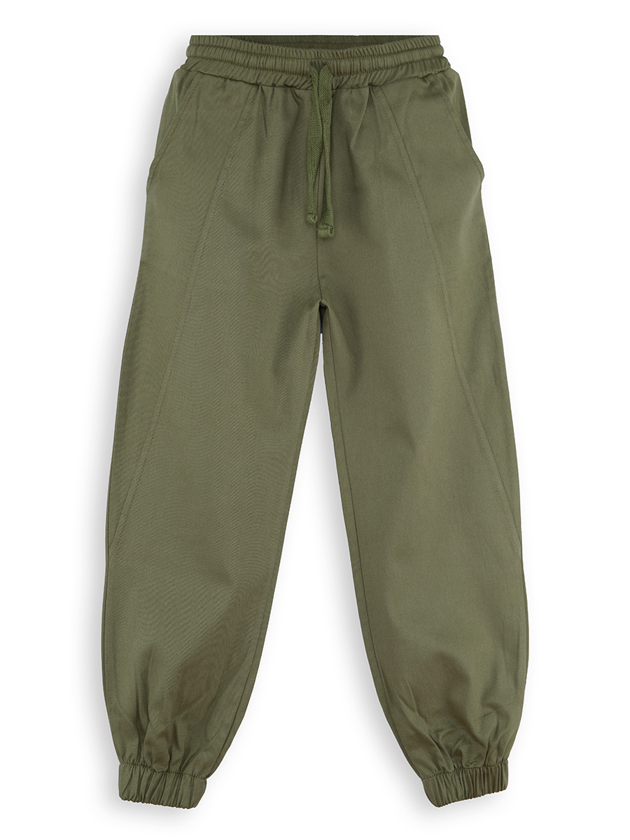 Soft cotton gabardine trousers for boys. Two side pockets. Elastic waist and hem. Drawcord closure at waist. 100% Cotton