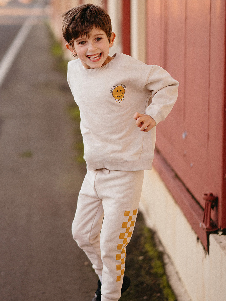 Bej Sarı Uzun Kollu Erkek Çocuk Sweatshirt