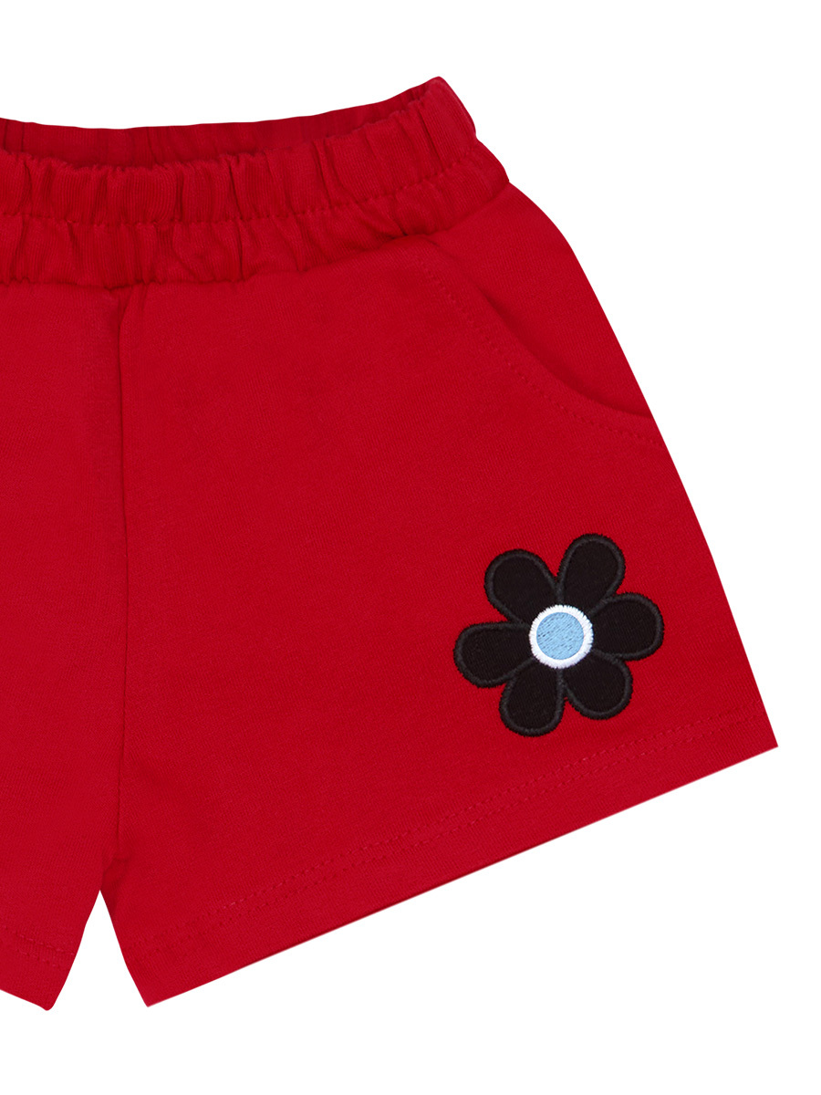 2 piece set. Printed tee with ruffles on and its matching shorts with a flower applique on.
