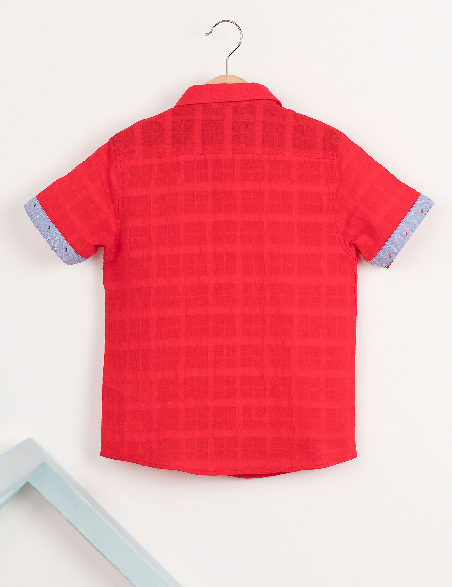 Front placket, short-lenght sleeve, red color, %100 cotton boy shirt. %100 cotton