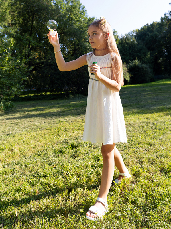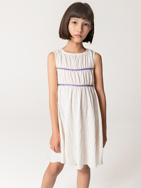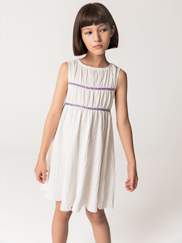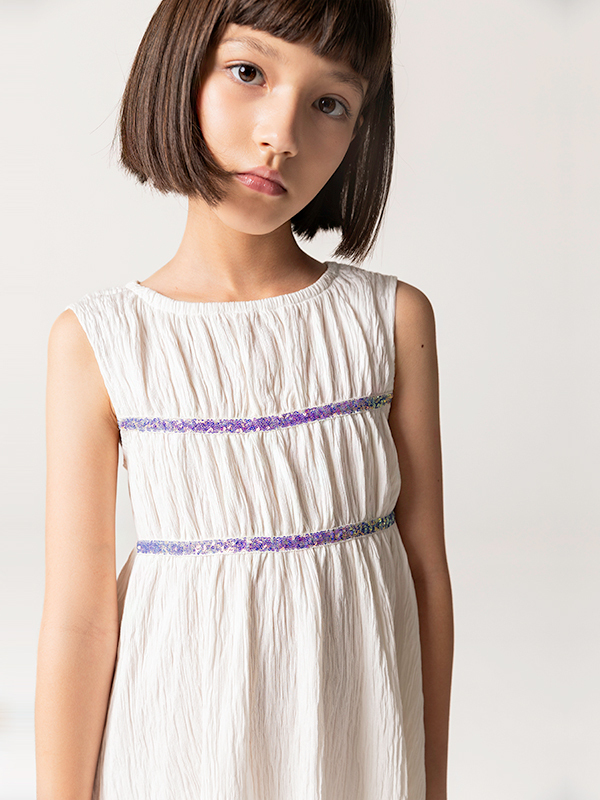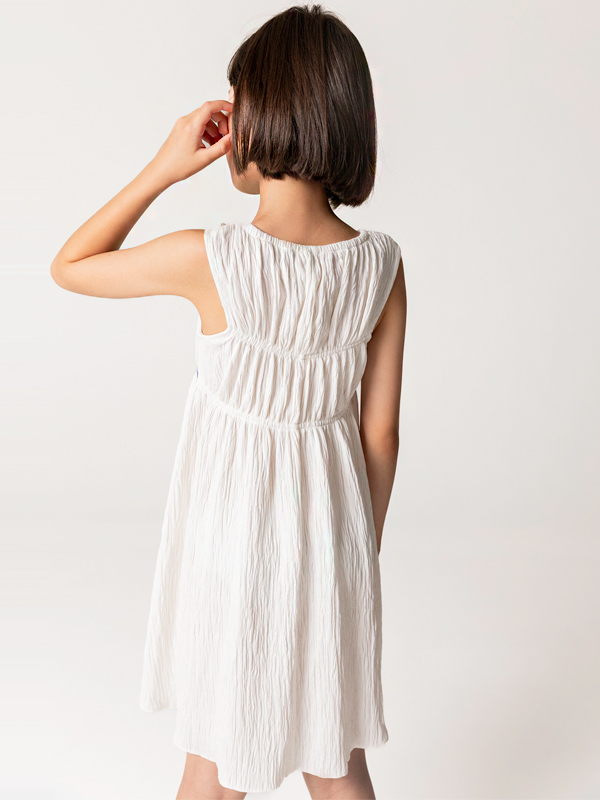Büzgülü Beyaz Kolsuz Kız Çocuk Elbise