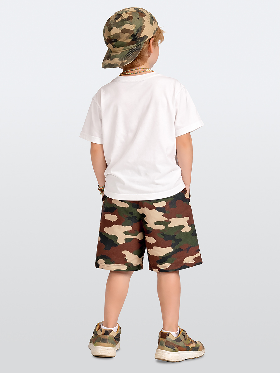 Bu Denokids “erkek çocuk takım” doğanın enerjisini, keşfetmenin heyecanını ve oyunun sürprizli dünyasını bir araya getirir. Hem T-shirt hem de şortu %100 pamuklu kumaştan üretilmiştir, hassas çocuk cildiyle uyumludur. T-shirt üzerinde yer alan kamp temalı çadır baskısı, çocukların hayal gücünü desteklemek için interaktif olarak tasarlanmıştır. Çadırın kapakları açıldığında içinden çıkan sürpriz baskı, çocuklara keşfetme ve oyun hissi kazandırır. Şort, enerjik ve modern kamuflaj desenli kumaştan üretilmiştir. Beli lastikli ve ayarlanabilir kordonludur; rahat ve güvenli kullanım sunar. Şortun 2 cebi sayesinde çocukların diledikleri küçük maceraları ceplerinde biriktirebilir. Denokids olarak çocukların renklerle ve eğlenceli karakterlerle büyüdüğünü biliyor ve “Çocuklar hayallerini giysin!” diyoruz. Tüm Denokids ürünleri, en yüksek Çocuk Güvenliği Standartlarına göre üretilir. Üretim aşamasında oluşabilecek iğne kırıklarını tespit etmek için her bir ürün tek tek metal dedektöründen geçirilir. Üst, Alt: %100 Pamuk