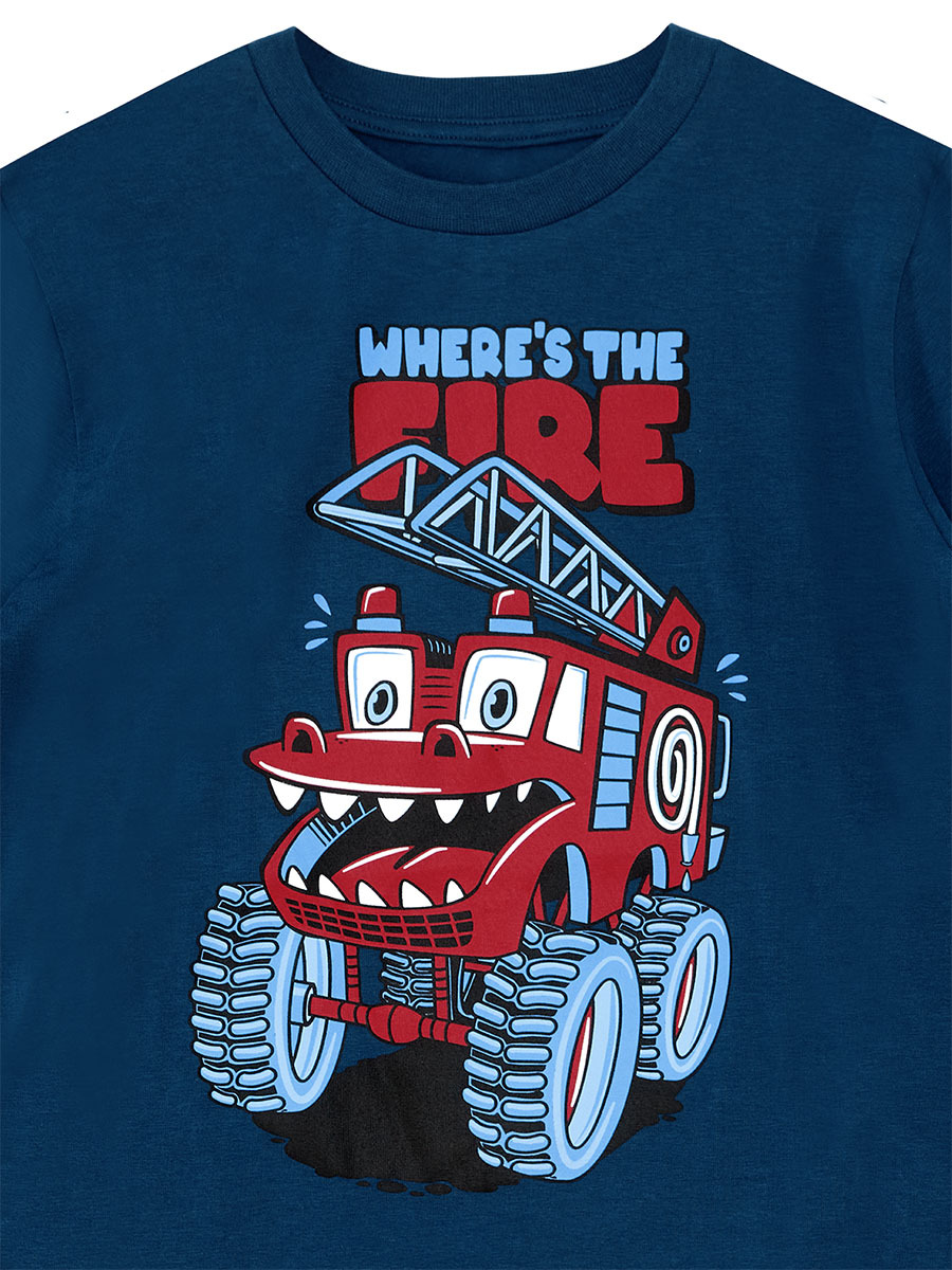 2 parça erkek çocuk pantolon ve t-shirt takım. Uzun, pamuklu penye kumaştan t-shirt. Üzeri itfaiye baskılıdır. Takımın pantolonu mavi, kışlık, pamuklu kumaştan üretilmiştir. Yanı kargo ceplidir. Cebin üzerinde komik yüz aplikesi vardır. Beli lastikli ve kordonludur. Tüm Denokids ürünleri çocuk güvenliği düşünülerek üretilmiştir ve iğne dedektörlerinden geçirilmiştir.