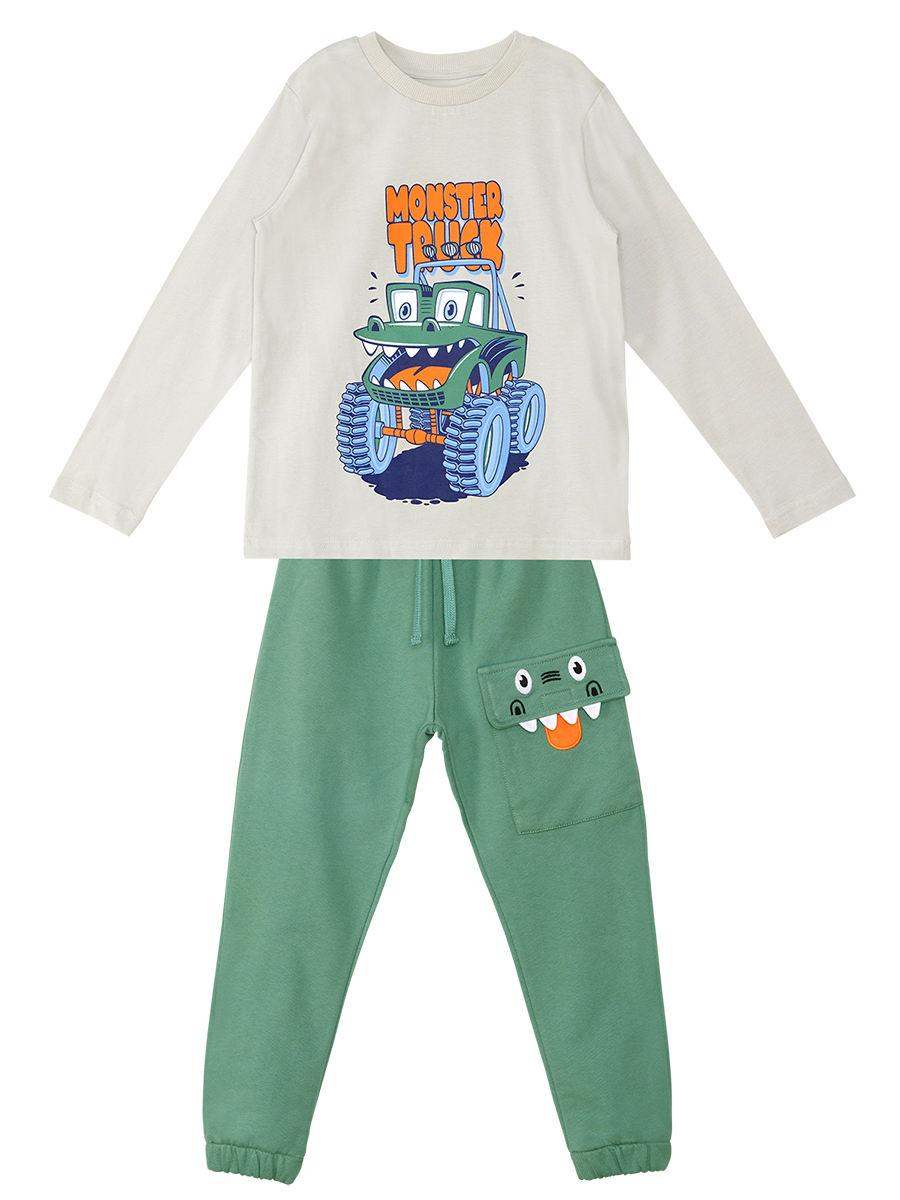 2 parça erkek çocuk pantolon ve t-shirt takım. Uzun kollu, pamuklu penye kumaştan baskılı t-shirt. Beli lastikli, pamuklu, kalın kışlık kumaştan, ön cepli eşofman altı. Cebin üzeri baskılıdır. Tüm Denokids ürünleri çocuk güvenliği düşünülerek üretilmiştir ve iğne dedektörlerinden geçirilmiştir. Üst: %100 Pamuk - Alt: %66 Pamuk %34 Polyester