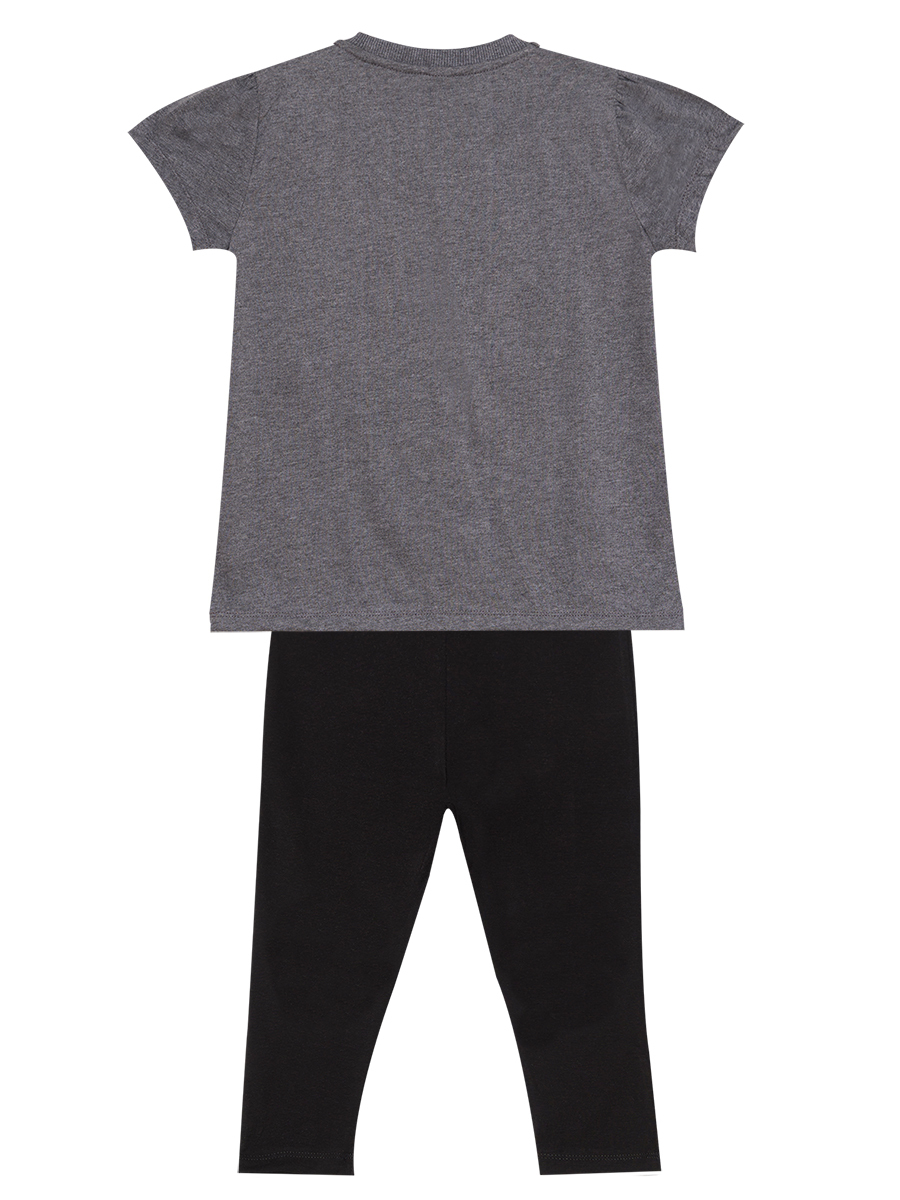 2 piece set. Cotton jersey, anthracite t-shirt. Gold shine cats print on. The leggings is elastic, cotton jersey. Has cats prints on both knees. All Denokids Products are manufactured within the Kids Safety Guideline. Has been inspected by