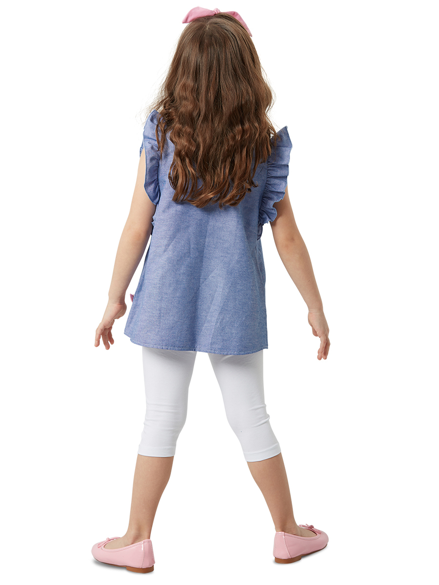 2 piece set. Tunic wtih ruffled shoulder cuti cat applique and 3D tail of the cat, plus its matching leggings with applique on one cuff
