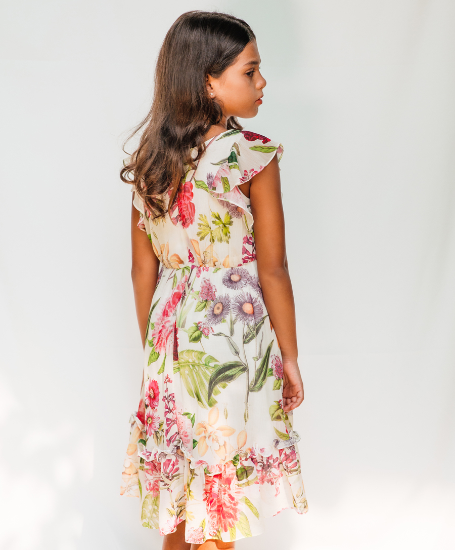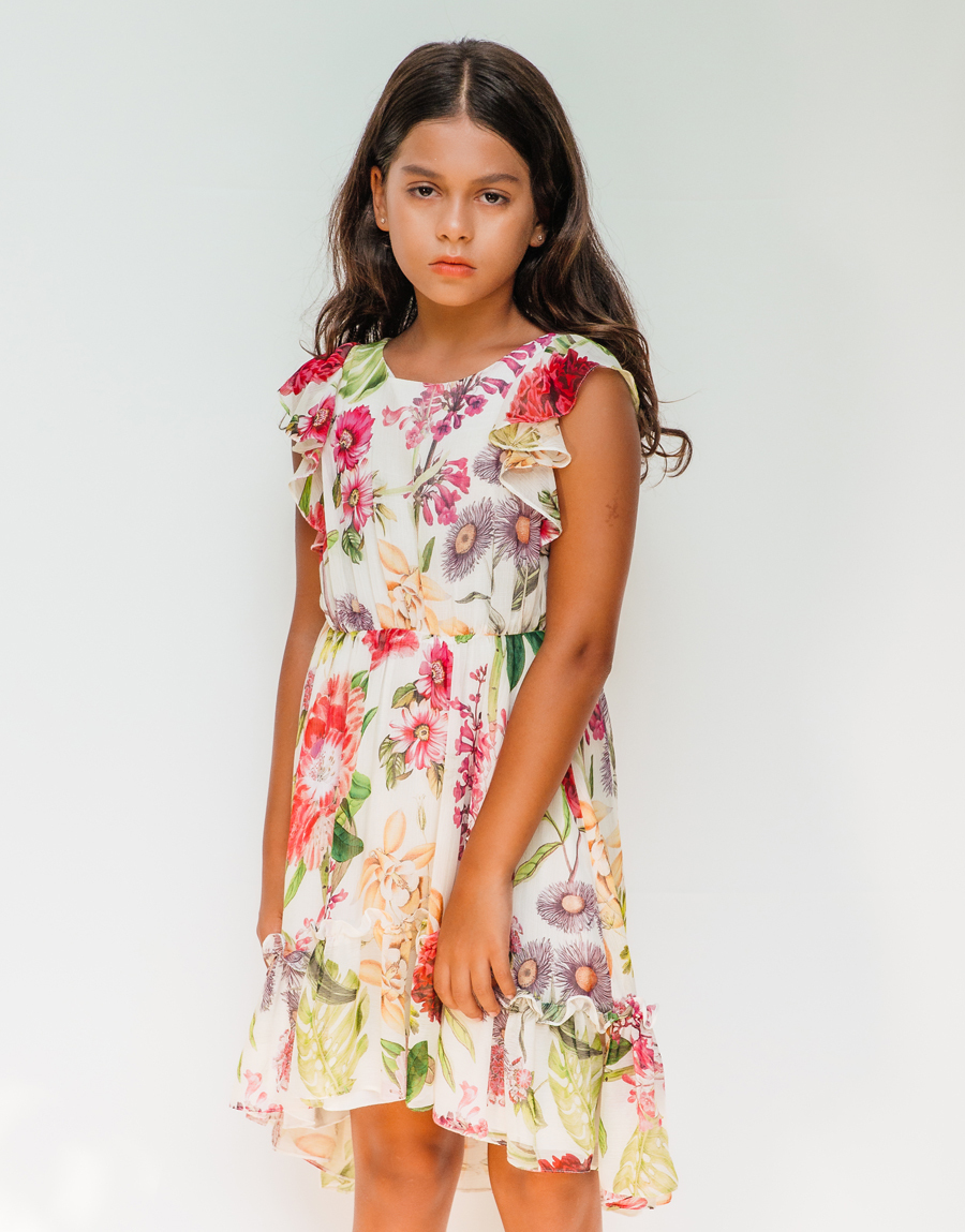 Çiçek Desenli Şifon Kız Çocuk Elbise