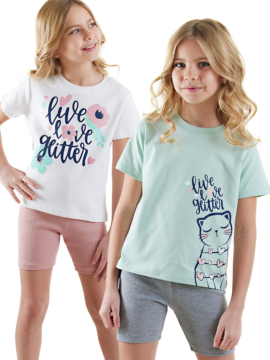 2'li paket pijama takım. Pamuklu kumaştan üretilmiştir. Kısa kol, bisiklet yaka. Üzeri romatik çiçek ve kedi baskılı. Takımın alt parçası elastik, rahat tayt şeklinde tasarlanmıştır. Tüm Denokids ürünleri Avrupa standartlarında "Çocuk Güvenliği Kuralları" gözetilerek üretilmiştir. İğne dedektörlerinden geçirilmiştir. Üst: %100 Pamuk - Alt: K1: %98 Pamuk %2 Elastan, K2: %69 Polyester %30 Pamuk %1 Elastan