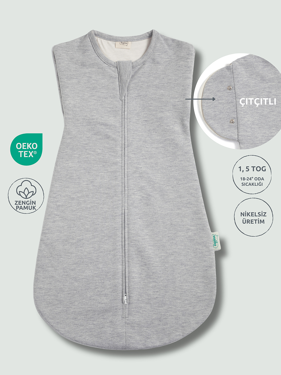 Çift Kat Pamuk Bebek Kundak Tulum 1,5 TOG Gri