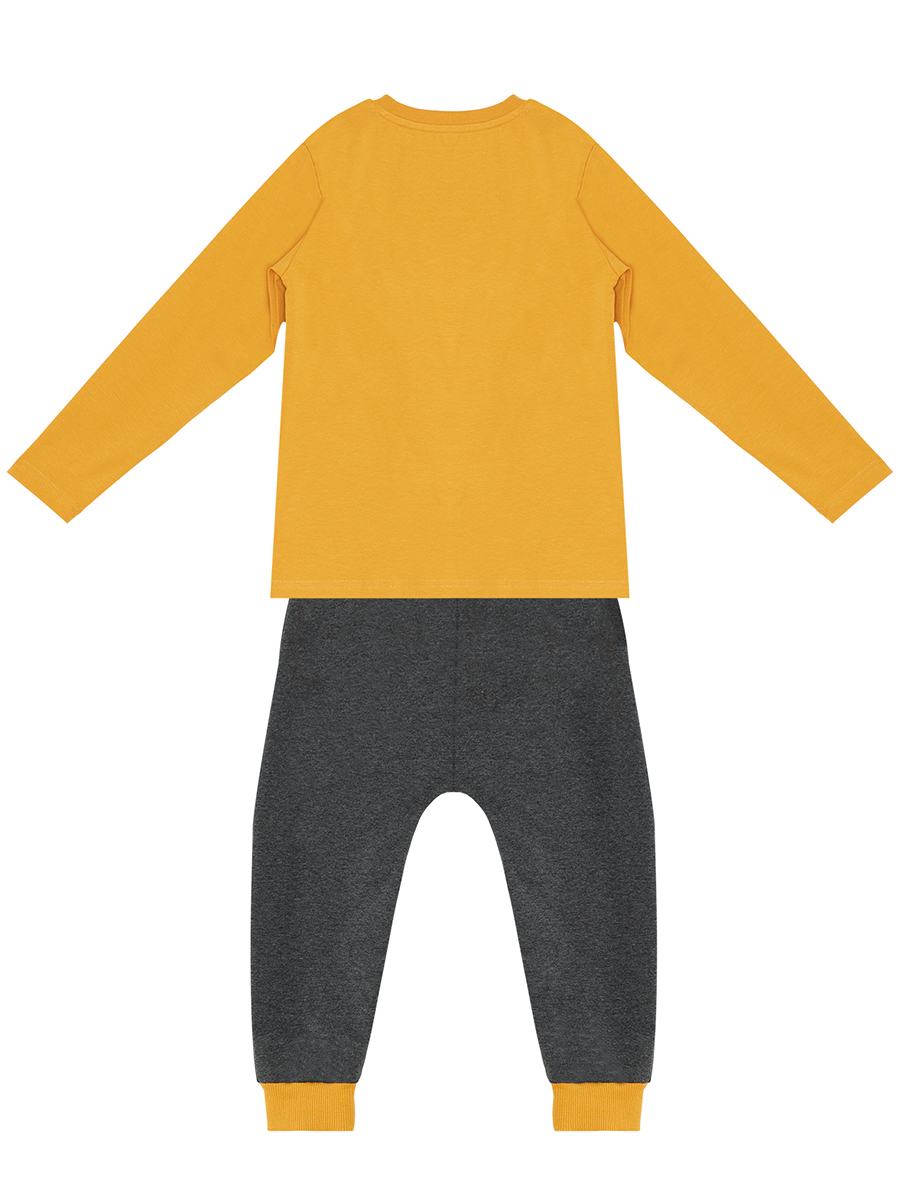 2 parça erkek çocuk pantolon ve t-shirt takım. Uzun kollu, pamuklu penye kumaştan t-shirt. Dinozor baskılıdır. Takımın pantolonu antrasit pamuklu, orta kalın kumaştan üretilmiştir. Önünde kanguru cebi vardır. Beli lastikli ve kordonludur. Tüm Denokids ürünleri çocuk güvenliği düşünülerek üretilmiştir ve iğne dedektörlerinden geçirilmiştir. Üst: %94 Pamuk %6 Elastan - Alt: %81 Polyester %14 Pamuk %5 Elastan