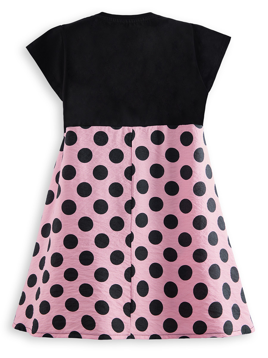 Short sleeve, girl summer dress. Upper body is made of cotton jersey fabric. It has a cat print on it. Skirts are made of woven, polka dot fabric. All Denokids products are produced in accordance with Child Safety Rules. In order to prevent