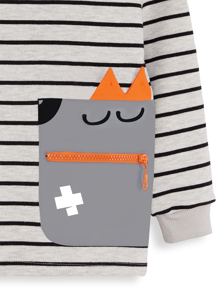 Kalın pamuklu, çizgili kumaştan üretilmiştir. Uzun kollu, sıfır yakalıdır. Üzerinde komik yüz baskısı olan büyük bir cebi vardır. Cepte fonksiyonel fermuar kullanılmıştır. Cebin üzerinde 3 boyutlu tırtır vardır. Tüm Denokids ürünleri çocuk güvenliği düşünülerek üretilmiştir ve iğne dedektörlerinden geçirilmiştir. % 56 Pamuk %40 Polyester %4 Viskoz