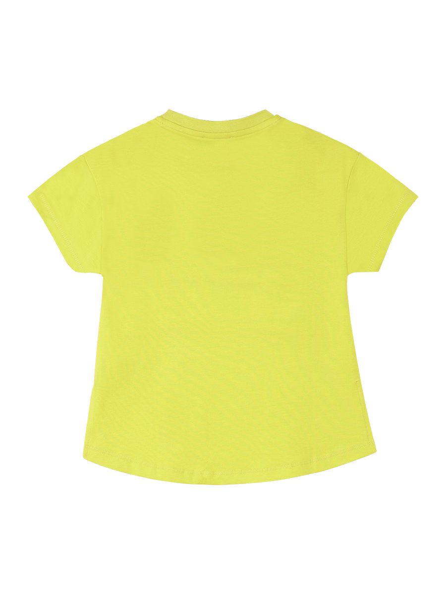 2 piece t-shirt and leggings set. Lime colored T-shirt made of cotton jersey. Has an assymetric front&back cut and a unicorn print on. The leggings is made of cotton jersey. And has a heart print on single leg.