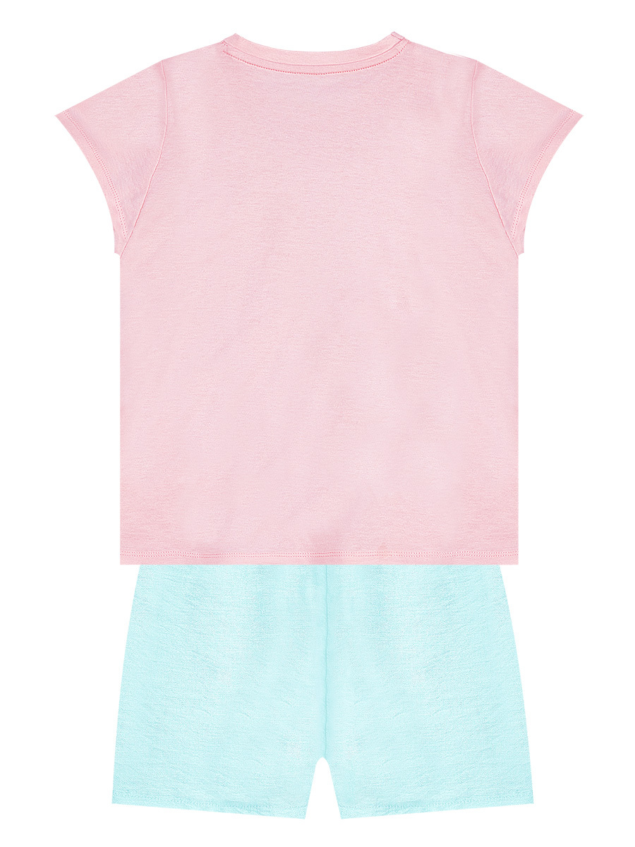 2 parça takım. Pamuklu penye, pembe t-shirt. Üzeri denizkızı baskılıdır. Dokuma kumaştan mini şort. Önü fırfır detaylı. Tüm MSHB&G ürünleri çocuk güvenlik kurallarına uygun üretilmekte ve tek tek iğne dedektörlerinden geçmektedir. Üst: %95 Pamuk %5 Elastan - Alt: %82 Viskon %18 Naylon
