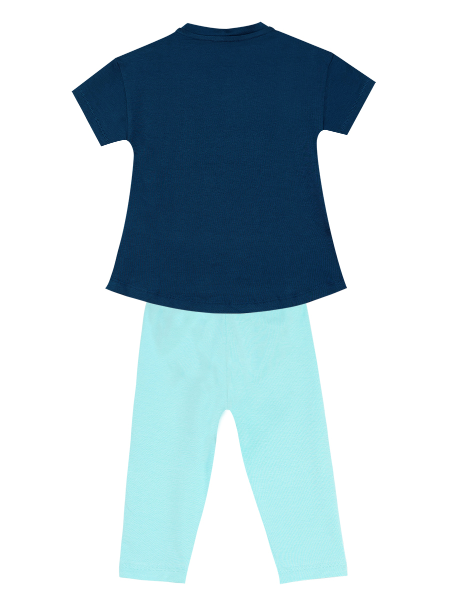 2 parça kız çocuk tunik ve tayt takım. Lacivert oval kesim, üzeri denizatı unicorn baskılı tunik ve mint mavi tayt. Üst, Alt: %96 Pamuk %4 Elastan