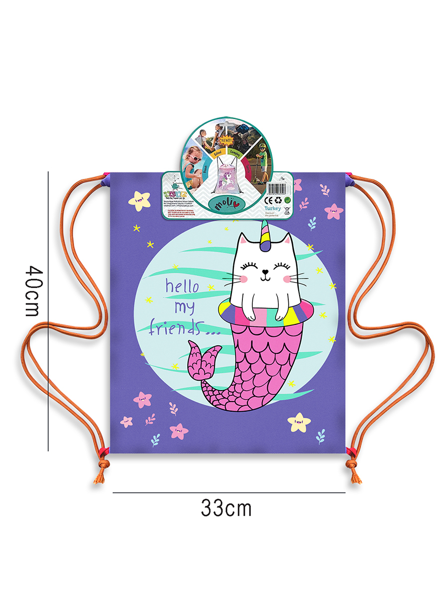 Renkli ve eğlenceli denizkızı desenli bu çocuk ipli sırt çantası, 36x46 cm ölçüsüyle hem okulda hem tatilde kullanım için idealdir. Su geçirmez kumaşı sayesinde plajda, havuzda veya yaz kampında eşyaları korur. Hafif yapısı ve dayanıklı ipleri ile Çocukların günlük kullanımına uygundur. Özellikle yaz aylarında deniz, tatil, piknik ve okul dışı etkinliklerde vazgeçilmez bir yardımcıdır. %100 Polyester