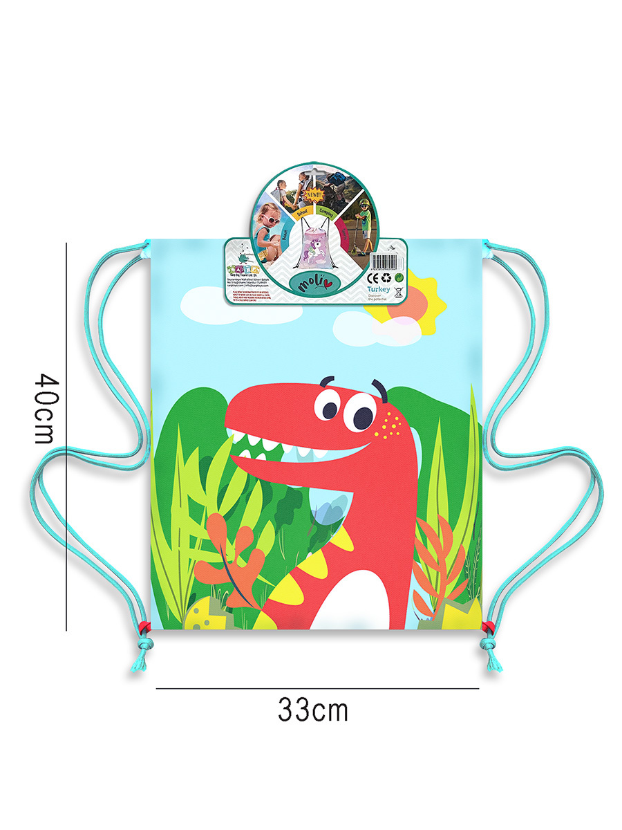 Canlı renklerdeki dinozor temalı bu çanta, küçük kaşiflerin favorisi olmaya aday. Okulda, parkta ya da tatilde kolay taşıma imkânı sunan ipli tasarımı ile pratik kullanım sağlar. Su geçirmez kumaşı, plajda ya da yaz kampında ıslanma sorununu ortadan kaldırır. Günlük hayatta veya özel etkinliklerde çocukların tüm ihtiyaçlarını taşıyabileceği fonksiyonel bir üründür. %100 Polyester