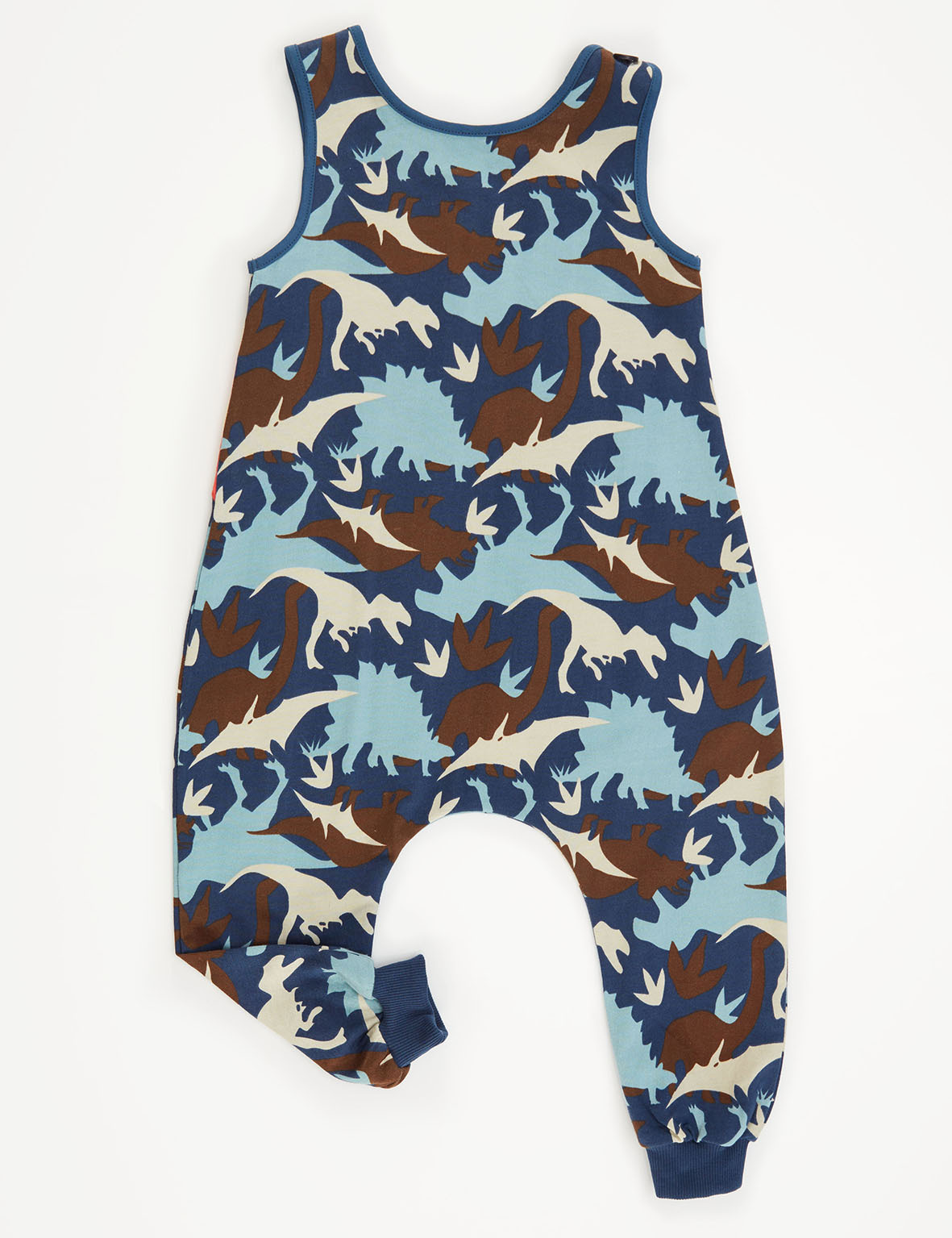 Camouflage dungaree with a dino applique. Baggy style cut provides comfort to your kid. Easy to wear on&off due to button on shoulder. %100 cotton