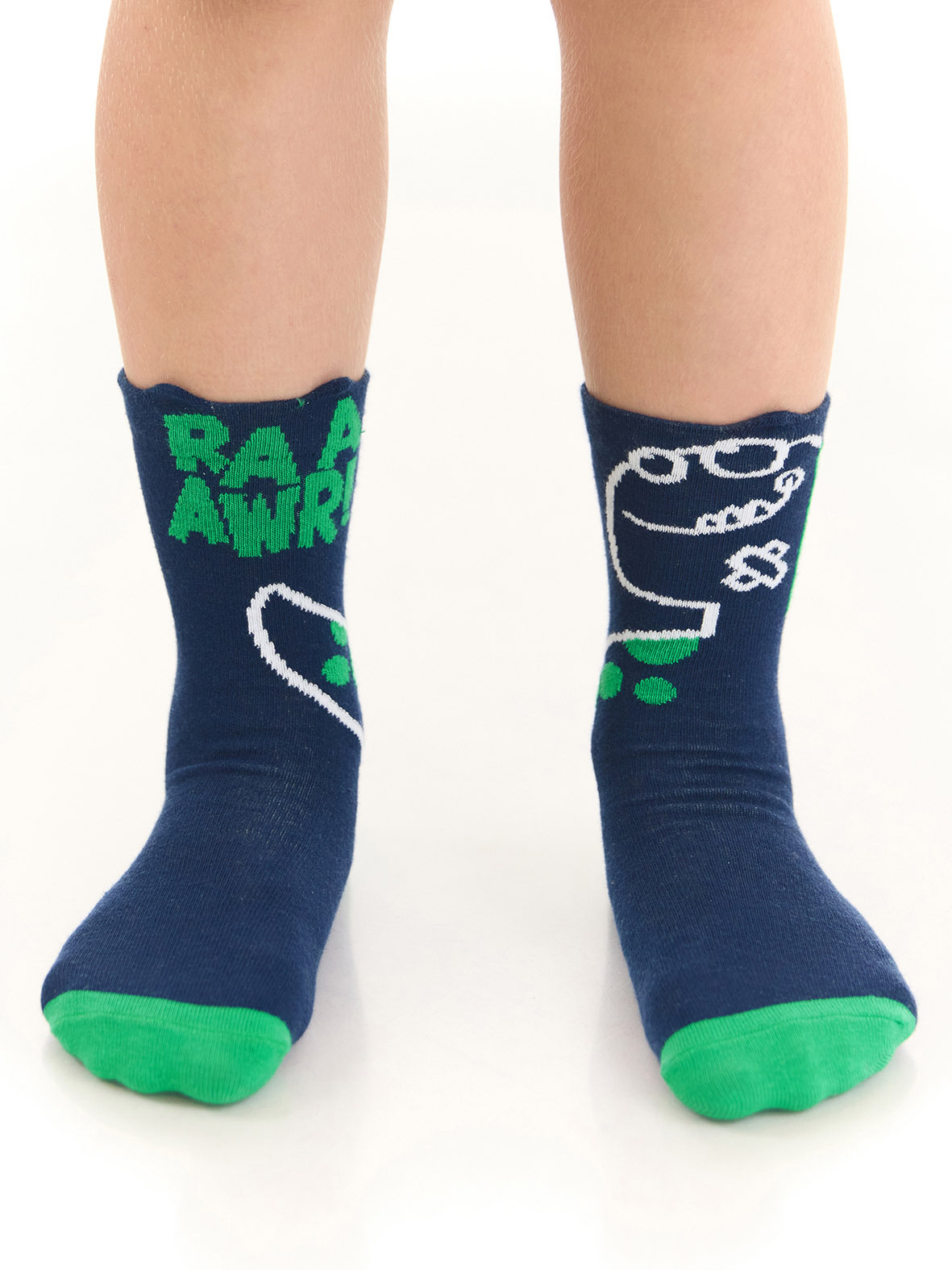 2-pack socks. Crafted in a soft cotton blend with knit-in dinosaur character. Long-lasting and comfy! All Denokids products are produced with kids safety guidelines.