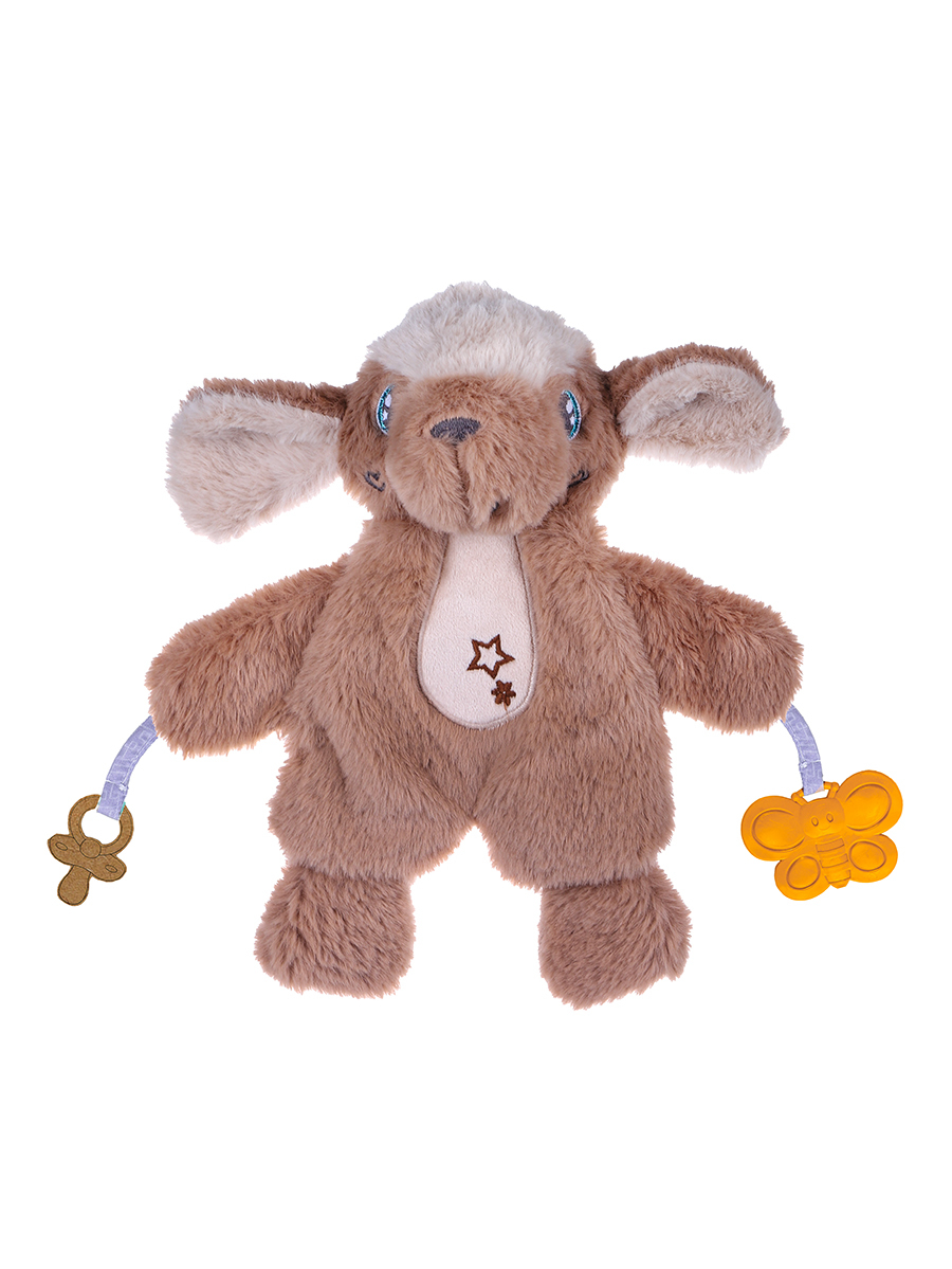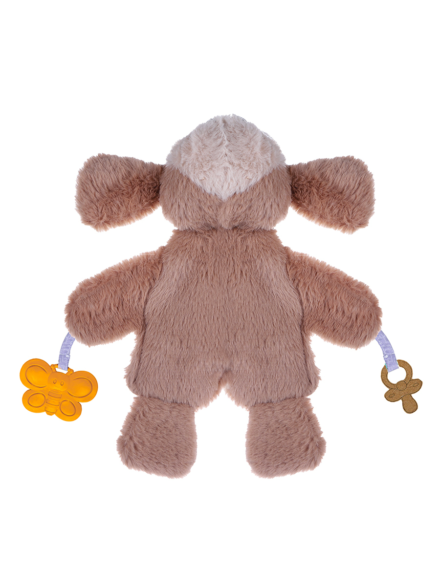 Yüksek kaliteli malzemelerle üretilen ve elinde dişlik bulunan bu yumuşak oyun arkadaşı, benzersiz ve yumuşak dokusu ile bebeğinizin rahatlamasına yardımcı olur.