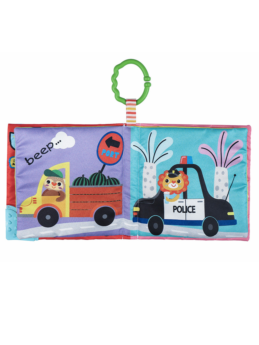 Bebeğin zihinsel gelişimine ve taşıtları öğrenmesine yardımcı olan soft kitap, dişlik, taşıma klipsi, dokulu ve hışırtılı sayfalara sahiptir. 0