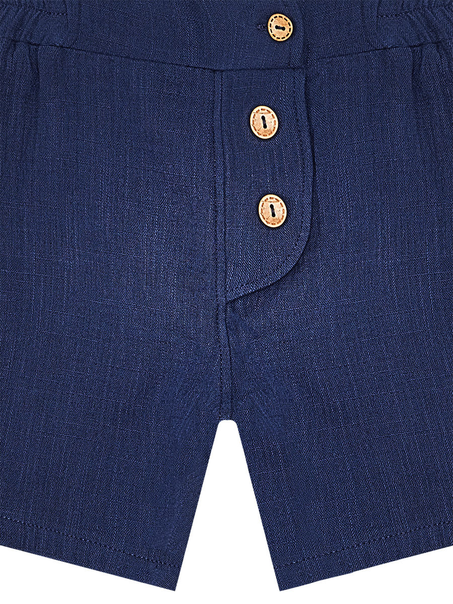 2 parça takım. Muslin kumaştan, hakim yaka gömlek. Tek ceplidir. Lacivert, muslin kumaştan şort. Önü 2 düğmelidir. Beli lastiklidir. Tüm Denokids ürünleri çocuk güvenlik kurallarına uygun üretilmekte ve tek tek iğne dedektörlerinden geçmektedir. %100 Pamuk