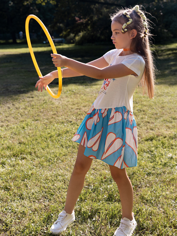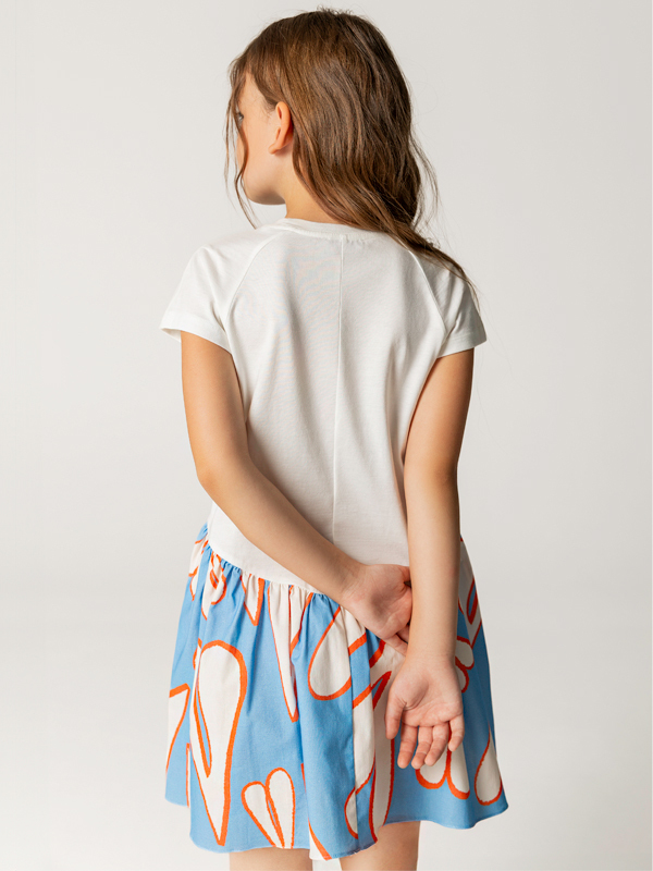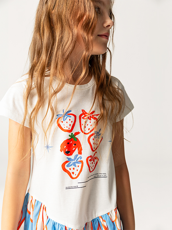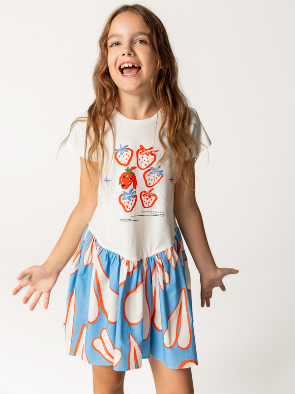 Etekli Çilek ve Kalp Desenli Kız Çocuk Elbise