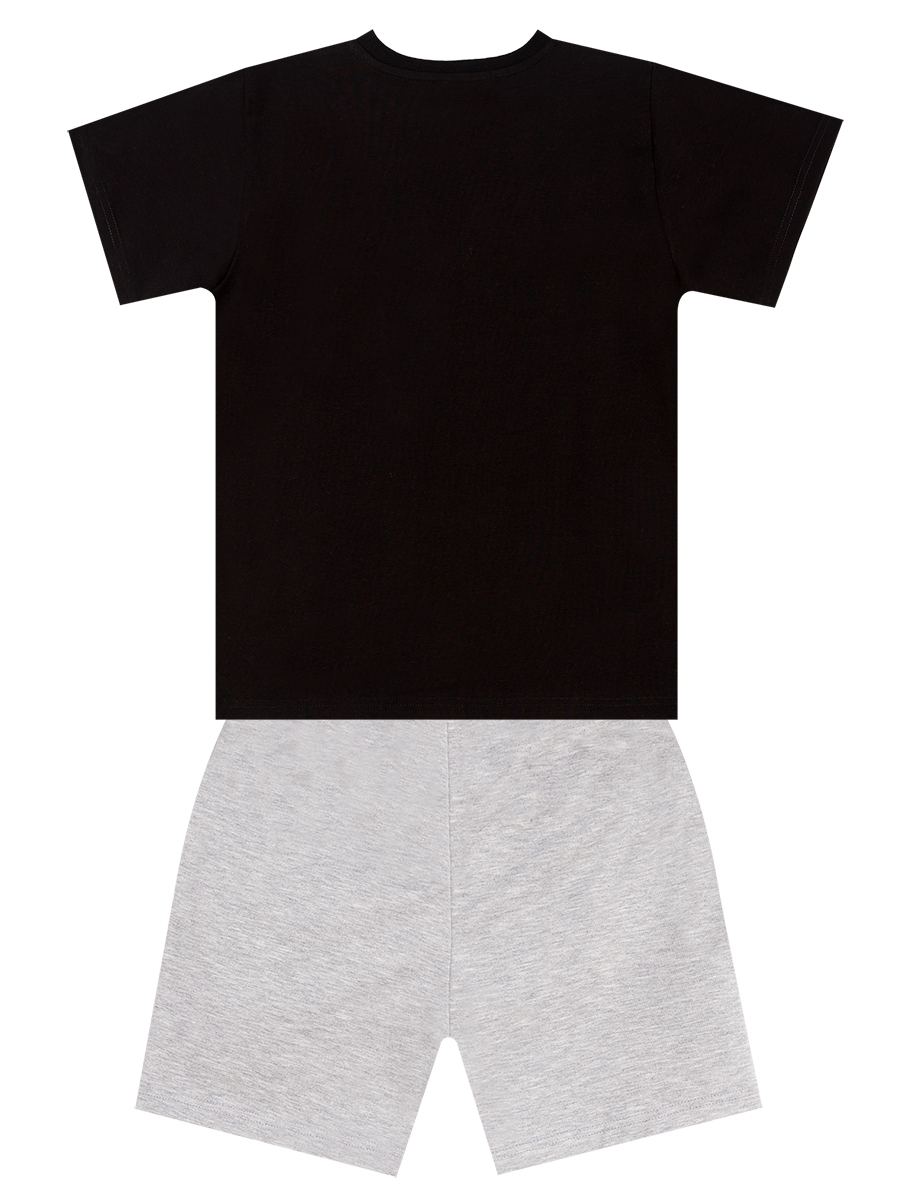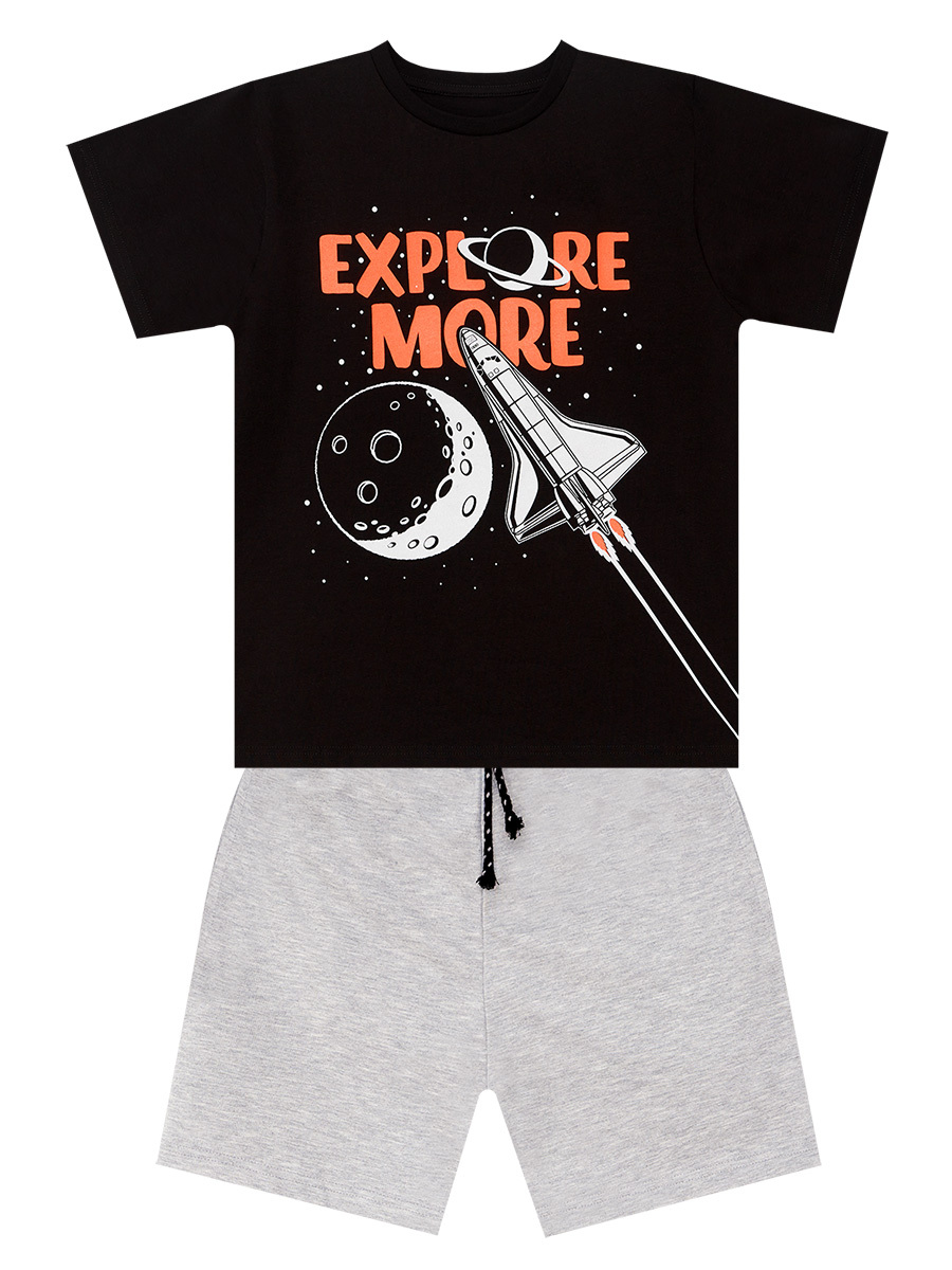 2 parça takım. Pamuklu penye kumaştan, siyah t-shirt. Üzeri uzay roketi baskılıdır. Şort pamuklu kumaştan üretilmiştir. 2 ceplidir. Beli lastik ve kordonludur. Tüm MSHB&G ürünleri çocuk güvenlik kurallarına uygun üretilmekte ve tek tek iğne dedektörlerinden geçmektedir.
