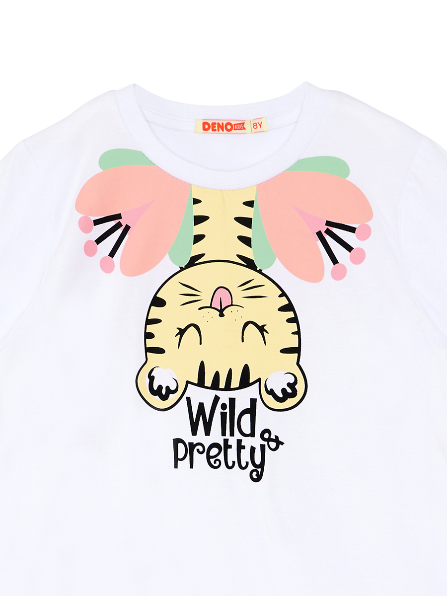 2 piece set. Long sleeve, round neck t-shirt. Features a cute animal print. The elastic leggings has all-over flower&leopard print on. This set will be your girl's favorite. All Denokids products are produced within kids safety guidelines a