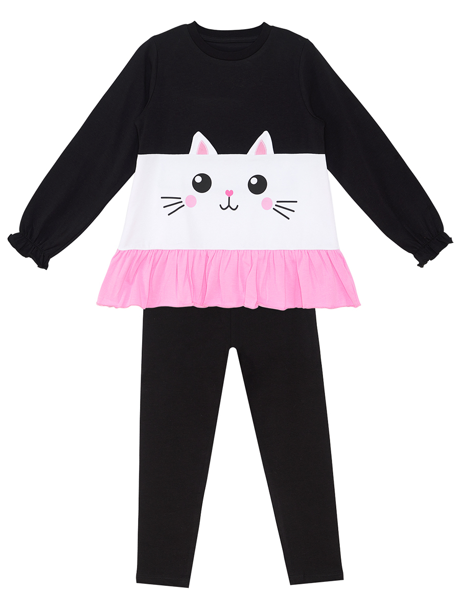 2 parça kız çocuk tayt ve t-shirt takım. Pamuklu penye kumaştan, uzun kollu t-shirt. Üzeri kedi baskılı. Kulaklar 3 boyutlu olarak dikilmiştir. Takımın tamamlayıcısı, pamuklu kumaştan, elastik tayt. Tüm Denokids ürünleri çocuk güvenliği düşünülerek üretilmiştir ve iğne dedektörlerinden geçirilmiştir. Üst: K1:%96 Pamuk %4 Elastan, K2: %93 Pamuk %7 Elastan, K3: %94 Pamuk %6 Elastan - Alt: %96 Pamuk %4 Elastan