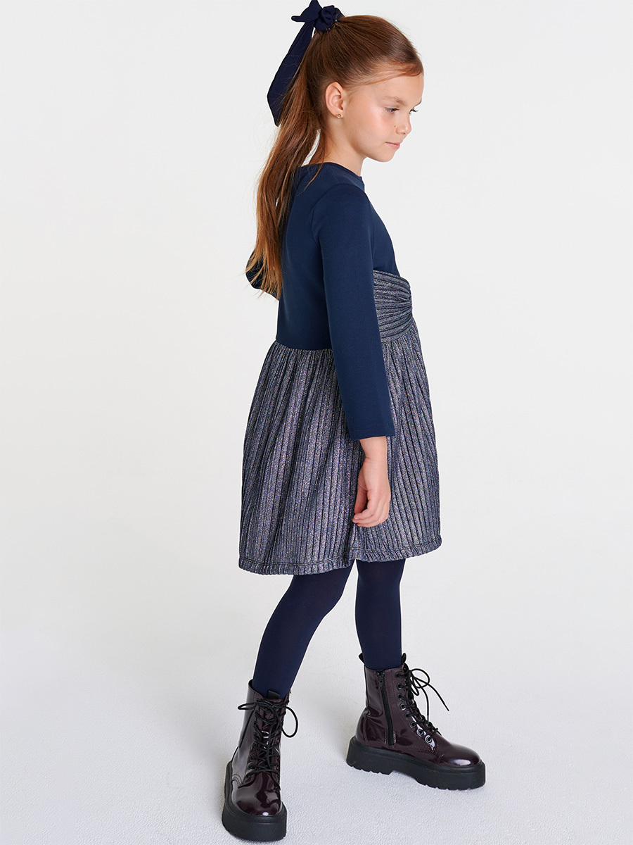 Üstü Örme Esnek Kumaştan Alt Kısmı Metalik Pileli Gümüş Varaklı Kumaştan Üretilmiştir. Astarsızdır. 67% Viskon %26 Polyester %7Elastan İkincil Kumaş %43 Polyester%30 Metalik %23 Viskon %4
