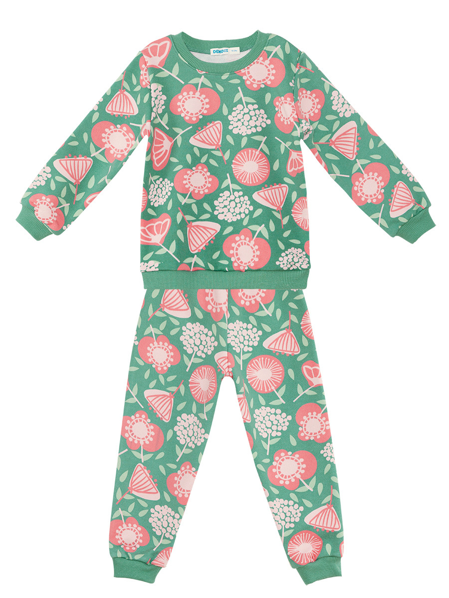 Allover flower printed, long sleeve, thick fabric tracksuit. Easy to wear on&off due to its snap fasteners on shoulder. Elasticated waist and ankles. All Denokids products are produced within Kids Safety Guidelines. To avoid any needles or
