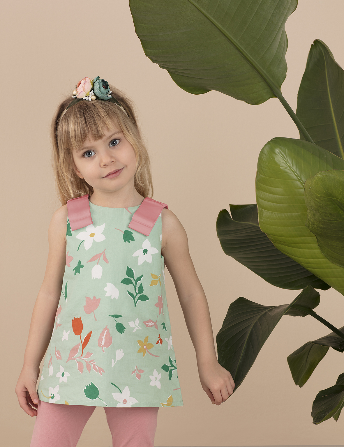 Full cotton, allover flower print tunik with ribbon on shoulders, zipper at back, full linning. %100 cotton