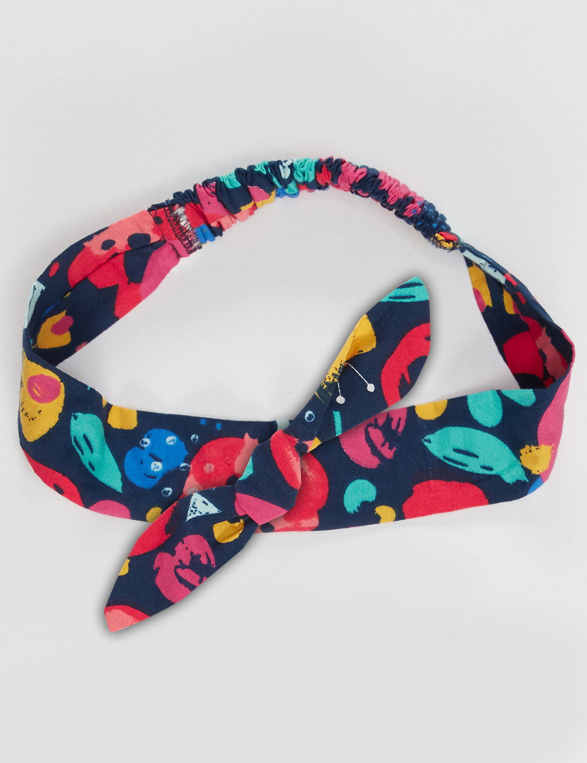 Hair band with flower pattern and a ribbon on. 100% Cotton