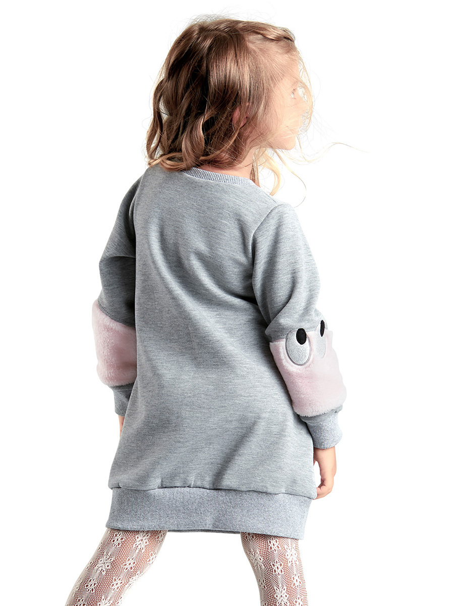 Grey thick dress with fluffy characters at wrists. %65 Cotton %35 polyester