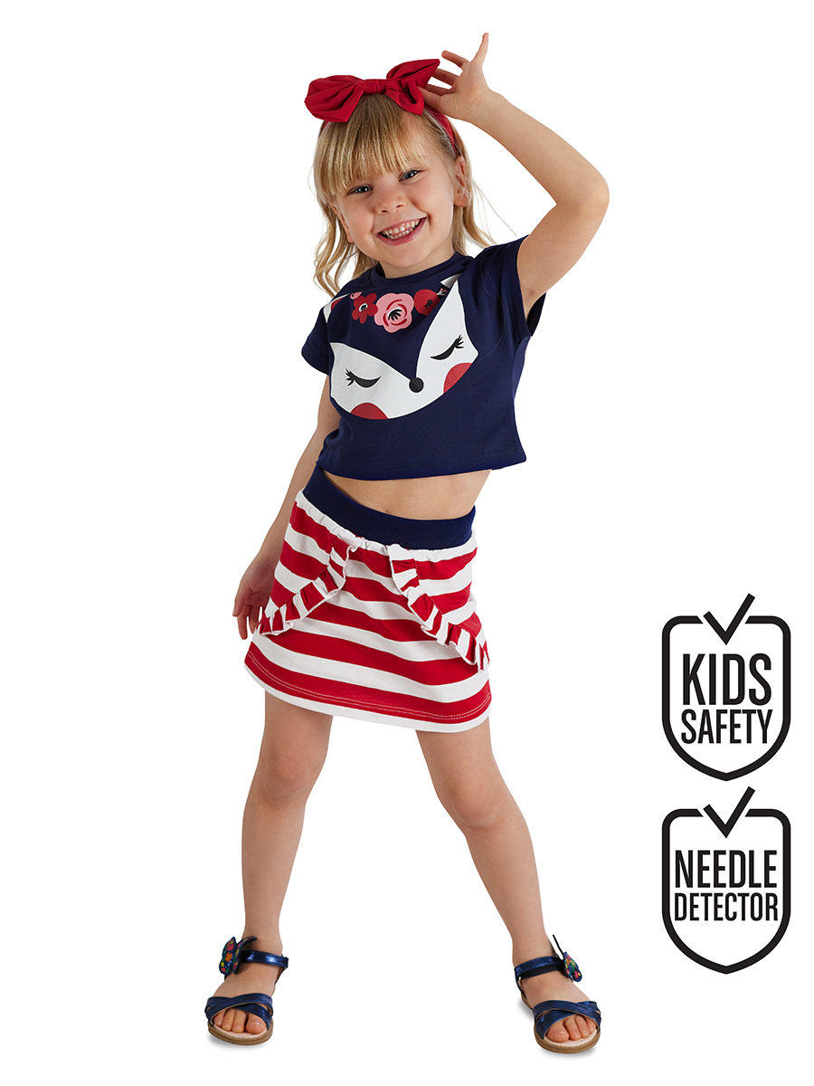 Fox Fırfırlı Kız Çocuk Crop Top Etek Takım