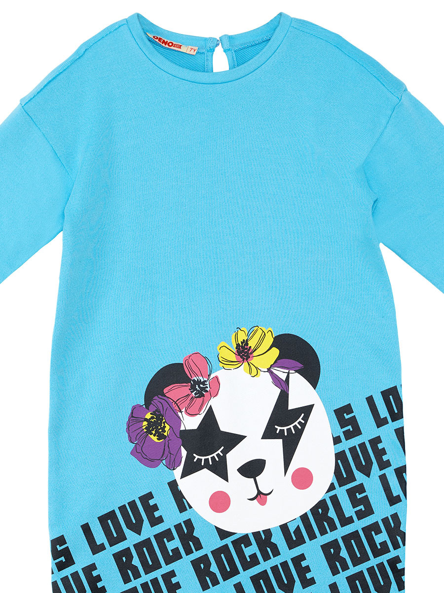 Üzeri panda baskılı, uzun kollu kız çocuk mavi elbise. %100 pamukludur. Tüm MSHB&G ürünleri Çocuk Güvenlik Kuralları'na uygun üretilmektedir. Çocuğunuzun tenine bir zarar gelmemesi için tüm ürünler, iğne kırıklarını tespit edebilen metal dedektörlerinden geçirilmektedir.