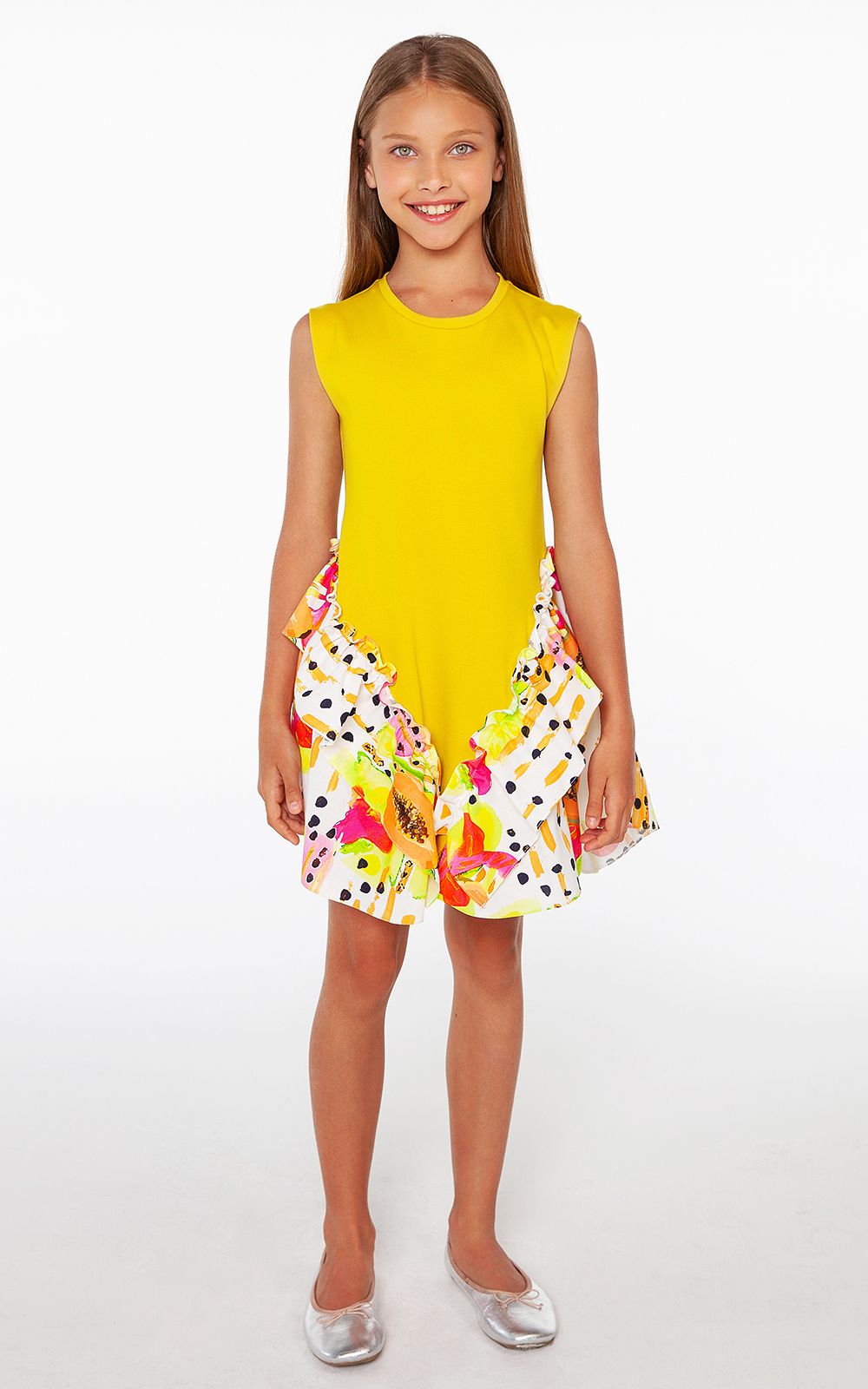 Hardal Rengi Örme Etek Ucu Desenli Kız Elbise