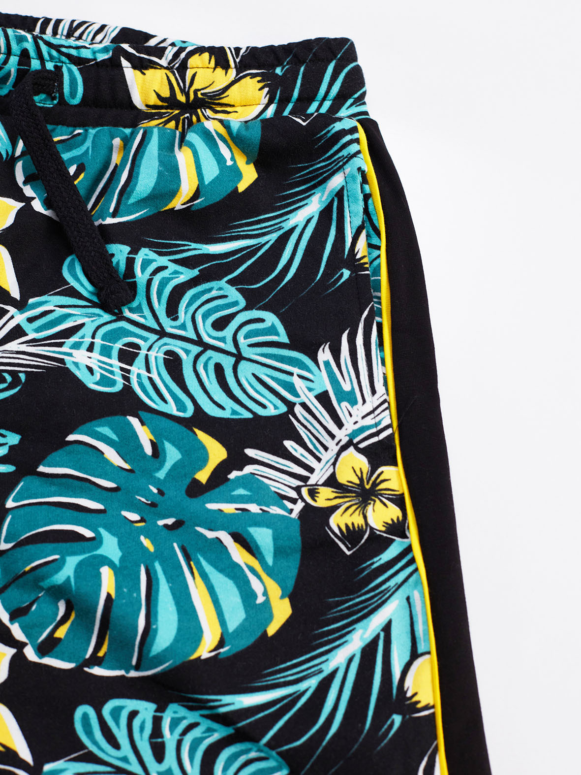 2 piece set. Cotton shorts with Hawaai pattern and side pockets&stripes. Cotton jersey T-shirt with a printon. bottom, top: %92 cotton %8 elastane