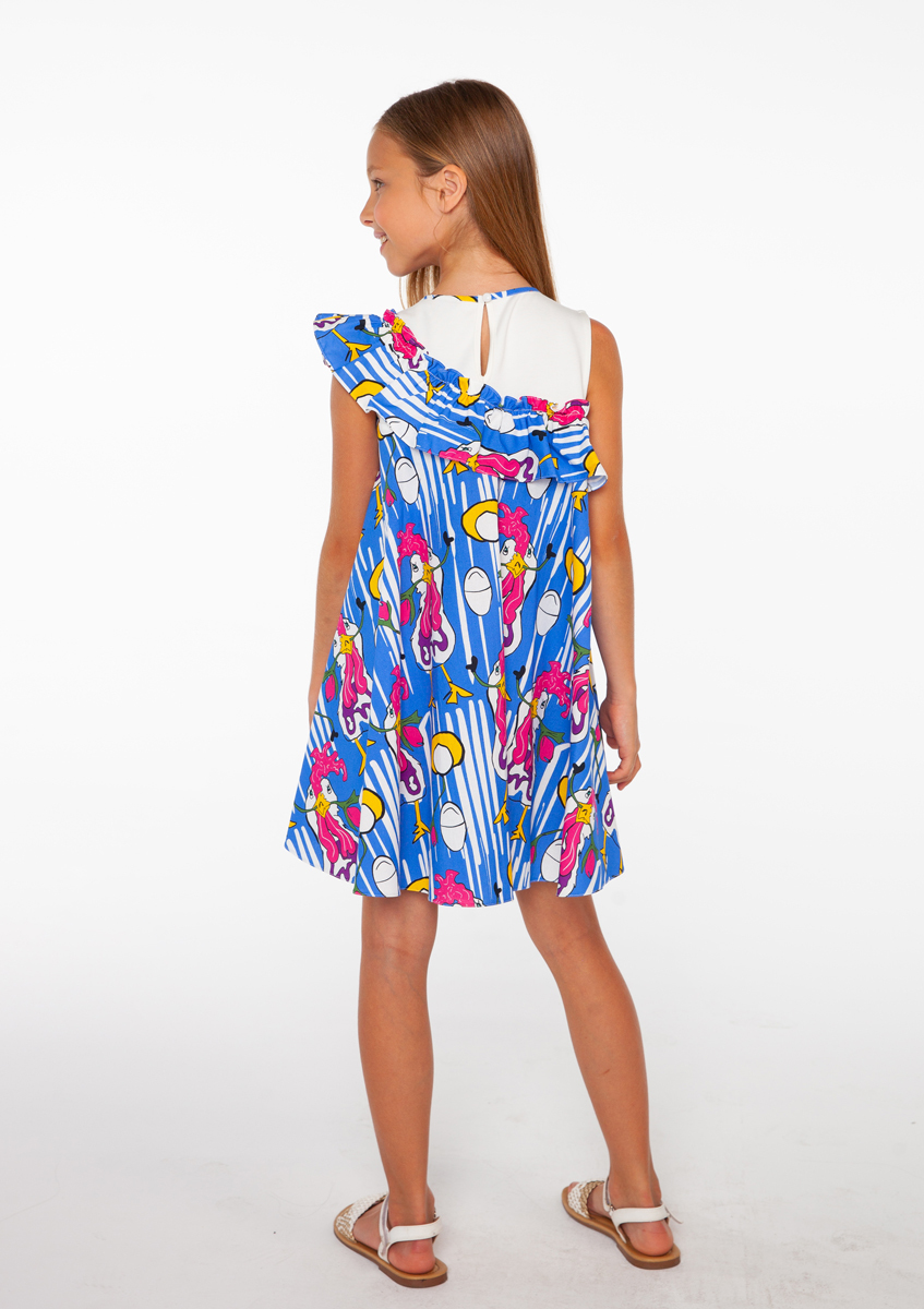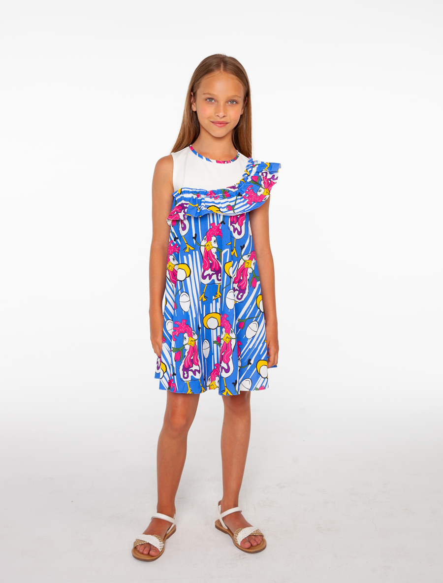 Horoz Desenli, Rahat Kalıp Kız Çocuk Elbise