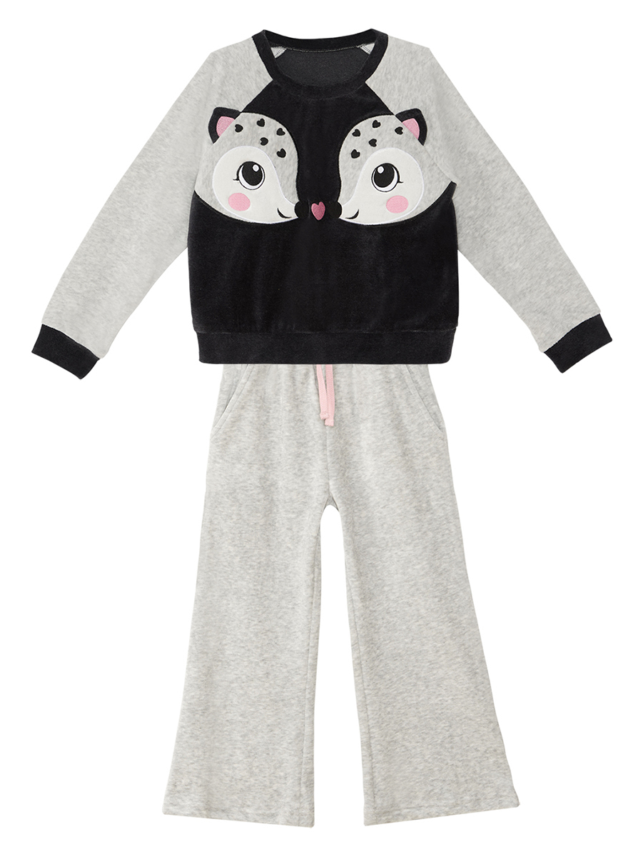 2 parça kız çocuk eşofman takım. Kalın kadife kumaştan, göğsü ceylan aplikeli eşofman üstü. Ceylanları kulakları 3 boyutludur. Eşofman altı kadifedir. Beli lastik ve kordonludur. 2 yan ceplidir. Tüm Denokids ürünleri çocuk güvenliği düşünülerek üretilmiştir ve iğne dedektörlerinden geçirilmiştir.