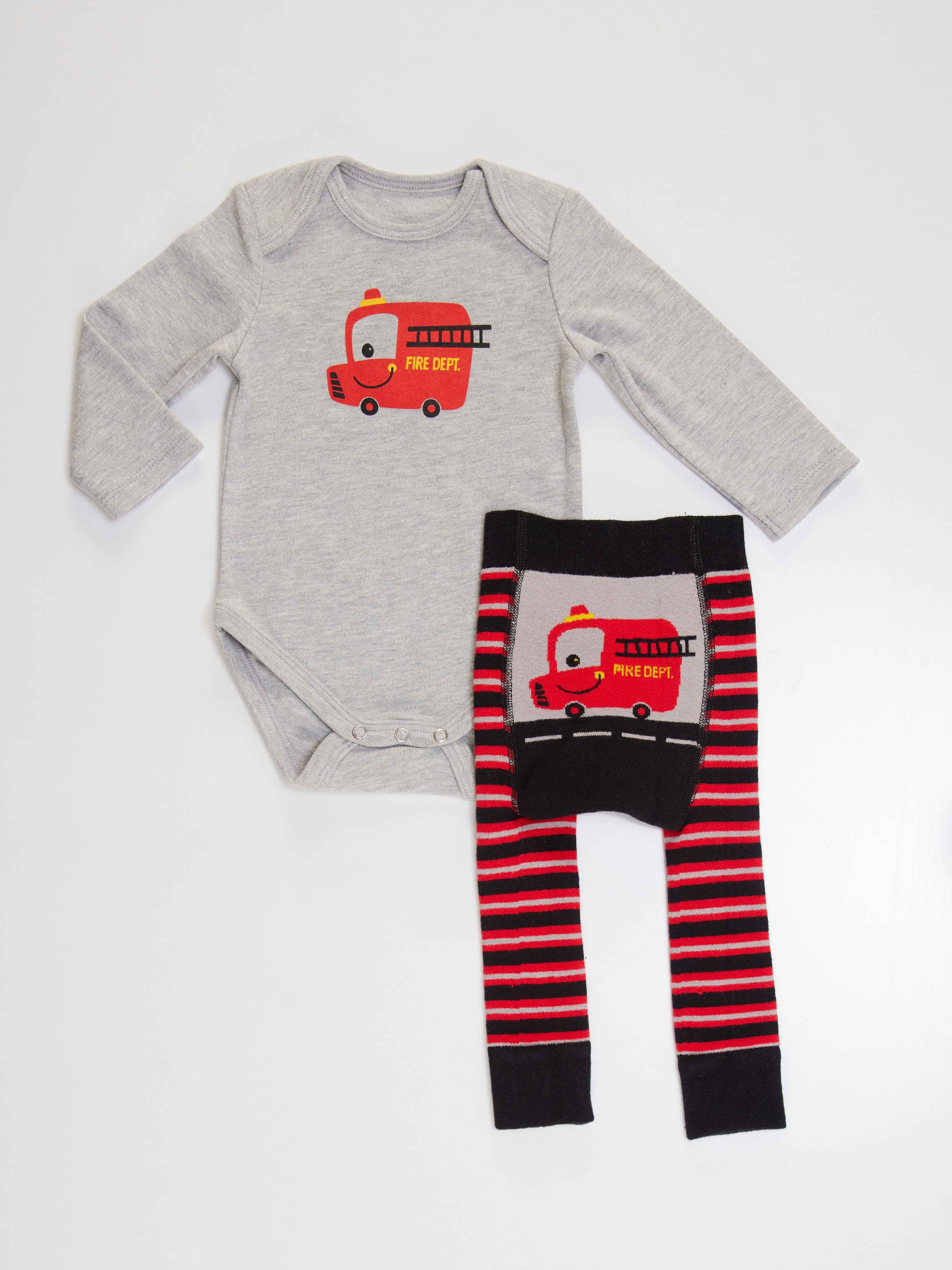 2'li erkek bebek takım. Pamuklu kumaştan, zarf yaka, önü itfaiye baskılı body. Ve kalın, pamuklu, havlu tarzı örmeden, çizgili tayt pantolon. Bebeklerin rahat hareket etmesi düşünülerek esnek tasarlanmıştır. Poposunda sevimli itfaiye deseni vardır. Tüm Denokids ürünleri çocuk güvenliği düşünülerek üretilmiştir ve iğne dedektörlerinden geçirilmiştir.