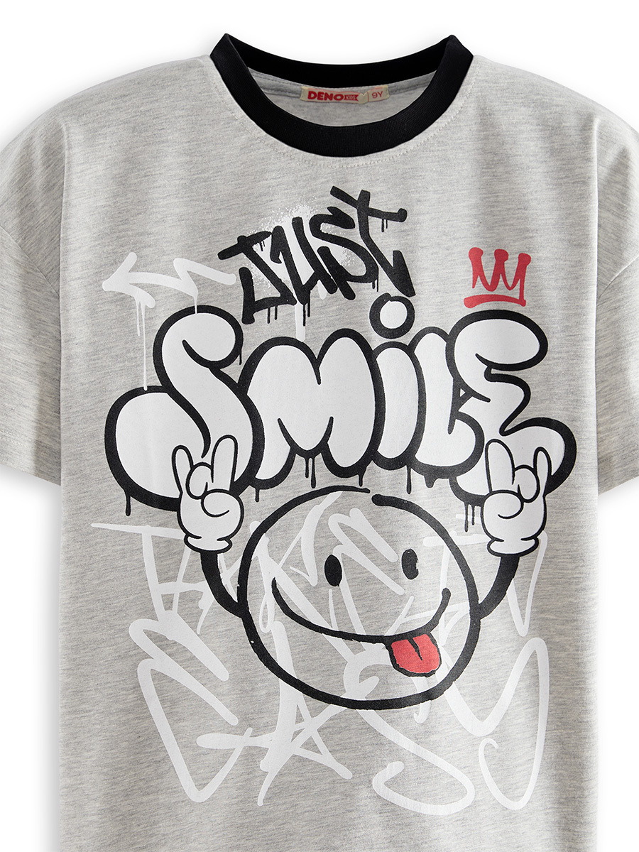 2'li paket T-shirt. Siyah ve gri melanj. Kısa kol, bisiklet yaka. Üzeri grafitti baskılı. Tüm Denokids ürünleri Avrupa standartlarında "Çocuk Güvenliği Kuralları" gözetilerek üretilmiştir. İğne dedektörlerinden geçirilmiştir. K1: %74 Polyester %23 Viskon %3 Elastan, K2: %63 Pamuk %31 Polyester %6 Elastan