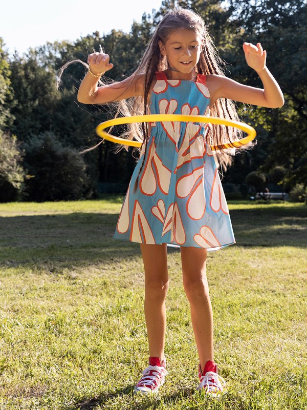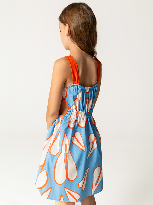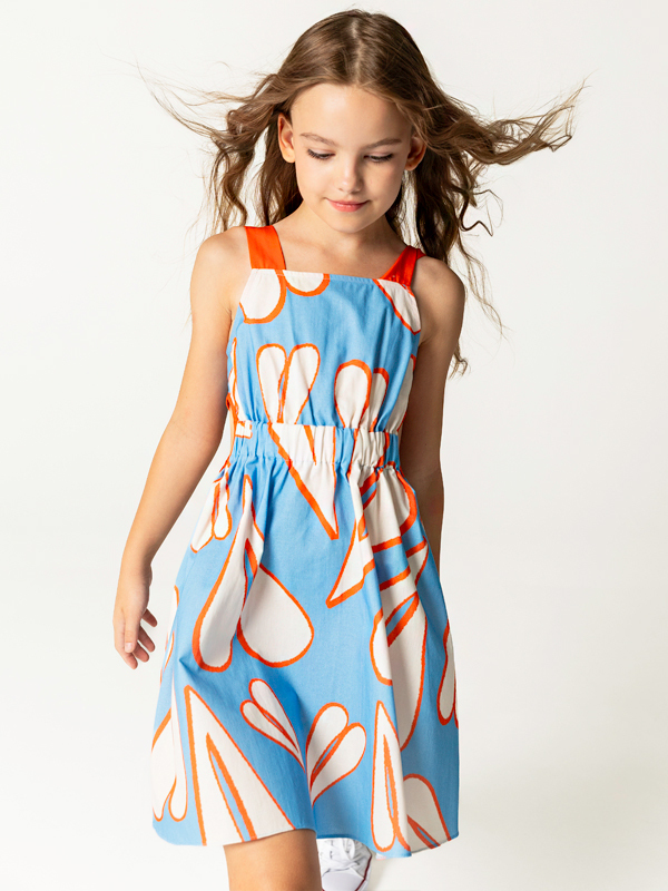 Kalp Desenli Askılı Mavi Kız Çocuk Elbise